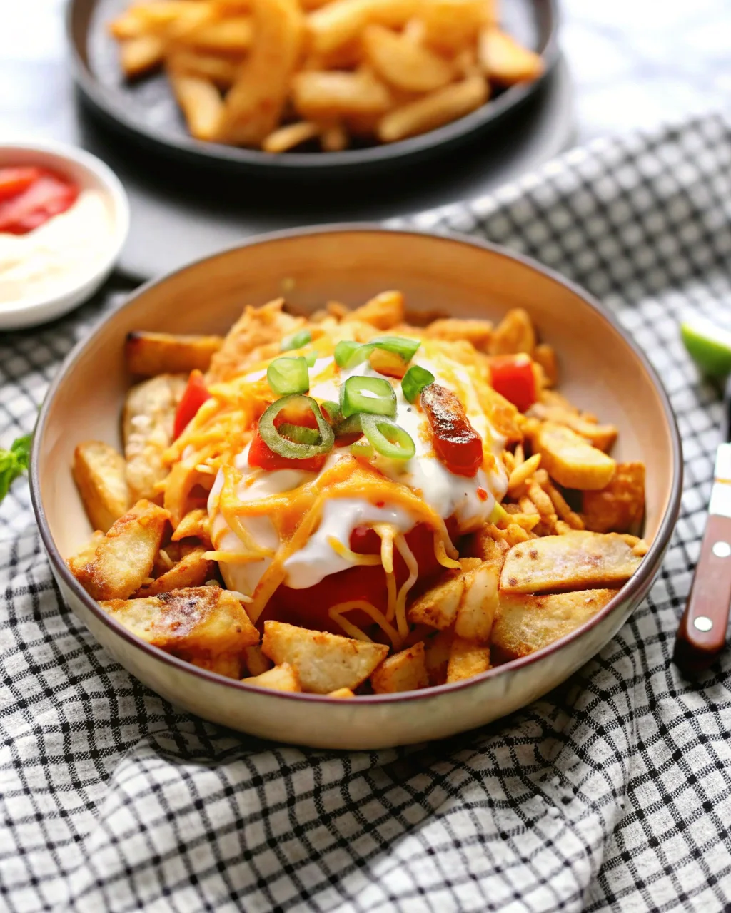 Top with crumbled bacon, green onions, and a dollop of sour cream for a loaded breakfast experience.