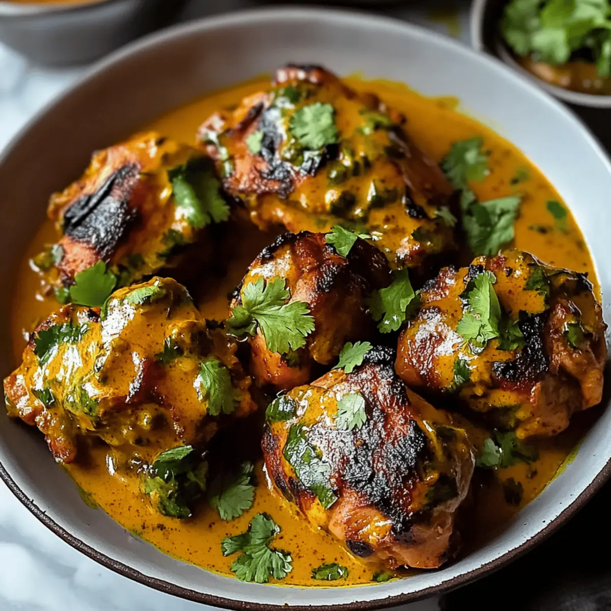 This soft, unleavened flatbread is perfect for scooping up the creamy chicken, adding a delightful chewiness to the meal. -