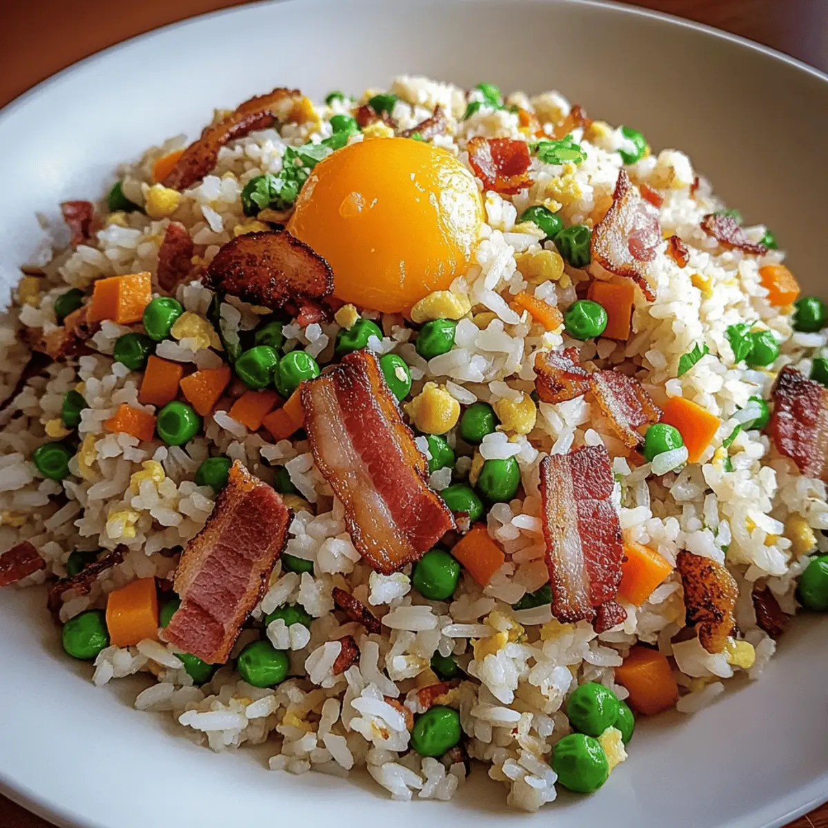Bacon Fried Rice can be easily modified for dietary preferences. You can swap pork bacon for turkey bacon or simply omit it for a vegetarian option. Moreover, you can use gluten-free soy sauce (like tamari) to accommodate those with gluten sensitivities. Just be sure to check any vegetable choices for potential allergens!