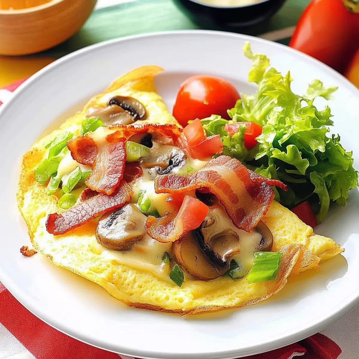 As the sun peeks through the kitchen window, there’s nothing quite like the sizzle of bacon to wake up the senses. Today, I’m thrilled to share my go-to recipe for Bacon & Mushroom Omelets—an effortless yet indulgent dish that promises to elevate your breakfast game. In just 25 minutes, you’ll whip up a high-protein meal that not only delights the taste buds but also fills your belly with satisfying warmth. The combination of crispy bacon and tender mushrooms creates a memorable savory delight, perfect for those bustling mornings or lazy weekends alike. Ready to take your omelet skills to the next level? Let’s dive in and whip up this delicious dish together!