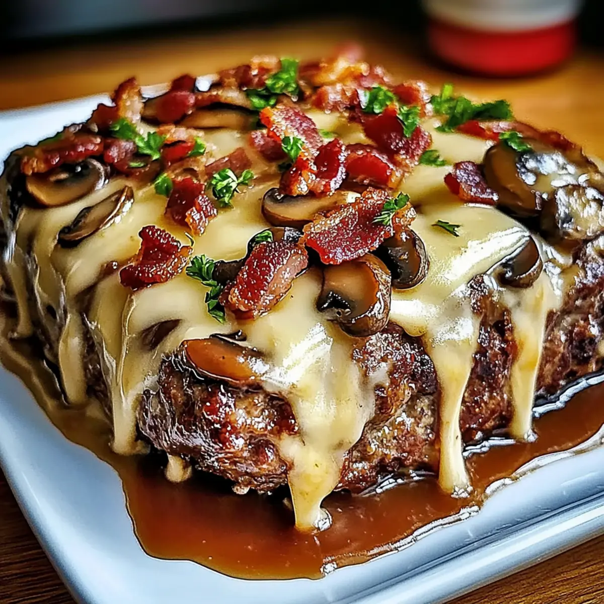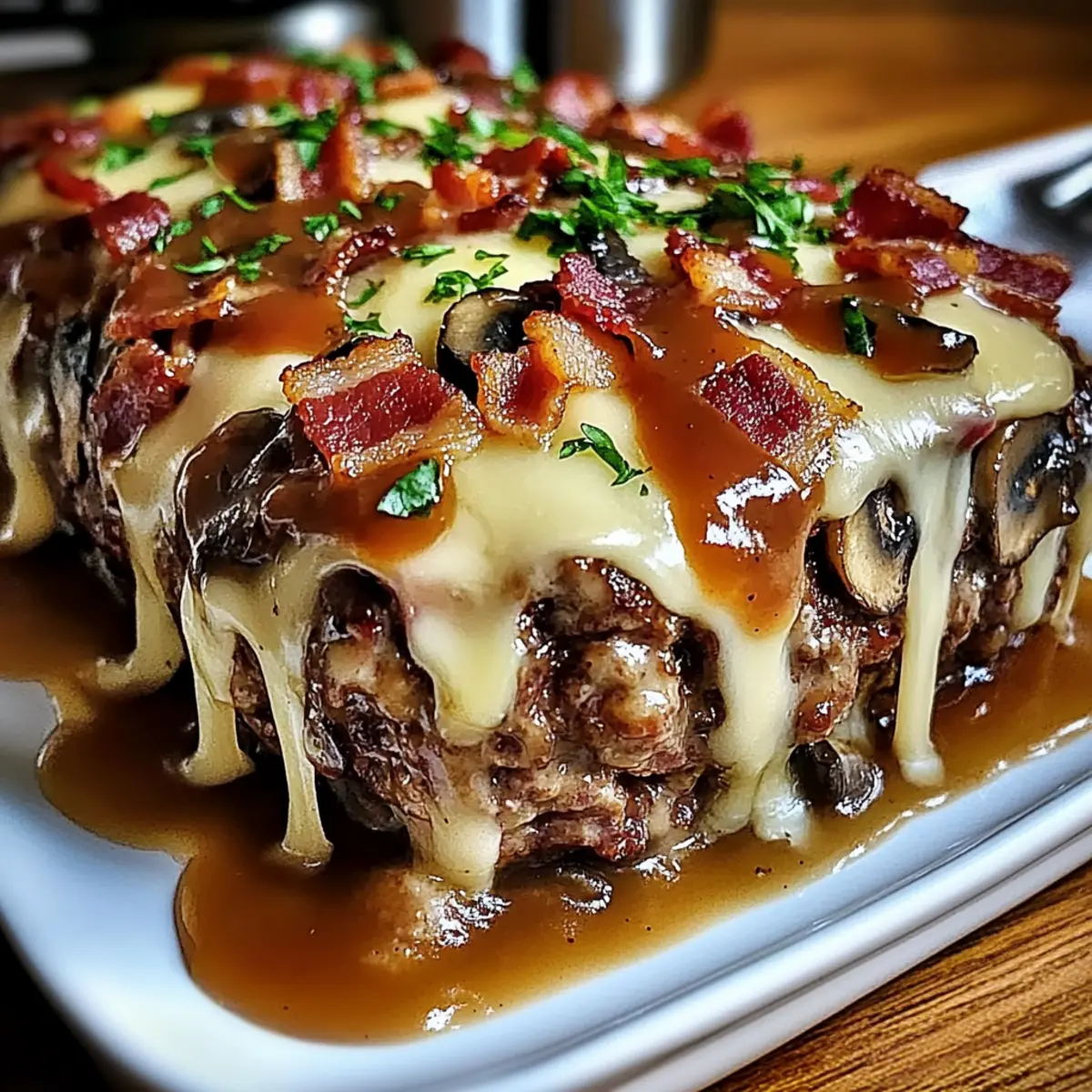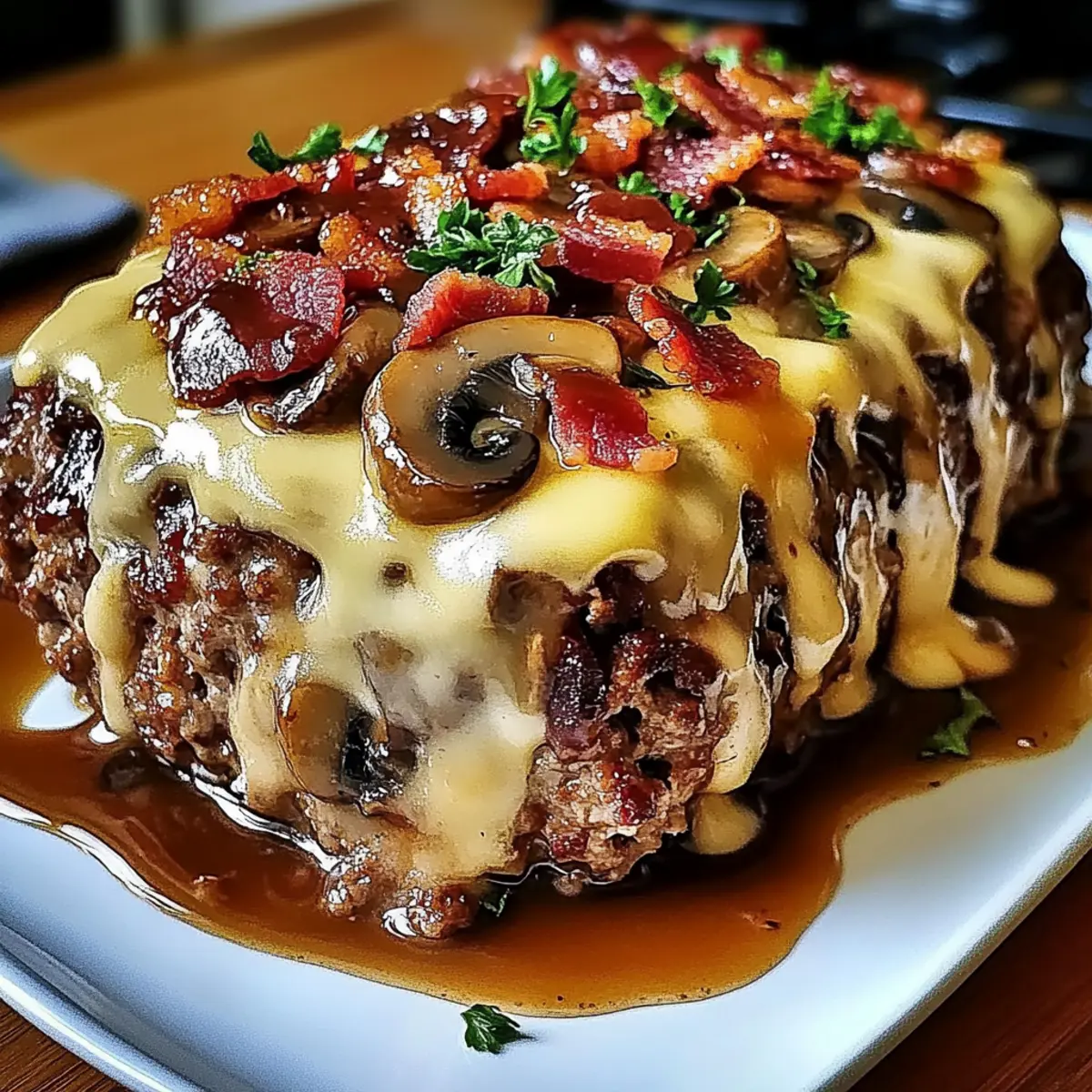 Irresistibly Juicy Bacon Mushroom Swiss Cheese Meatloaf Recipe