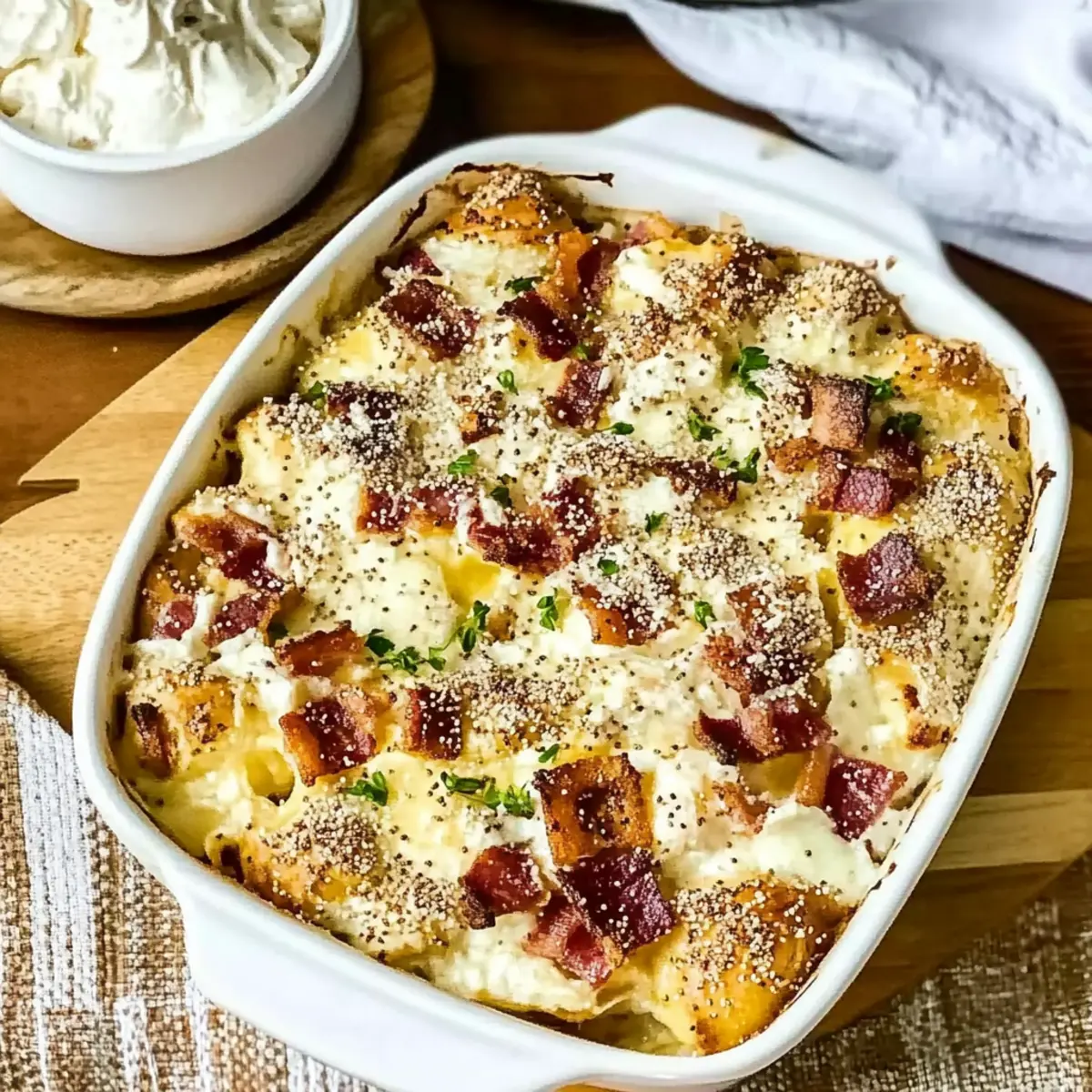 Vegetarian Delight: Substitute bacon with sautéed mushrooms or diced bell peppers for a vibrant, meatless version. This twist adds earthy flavors that balance beautifully with the creamy layers.