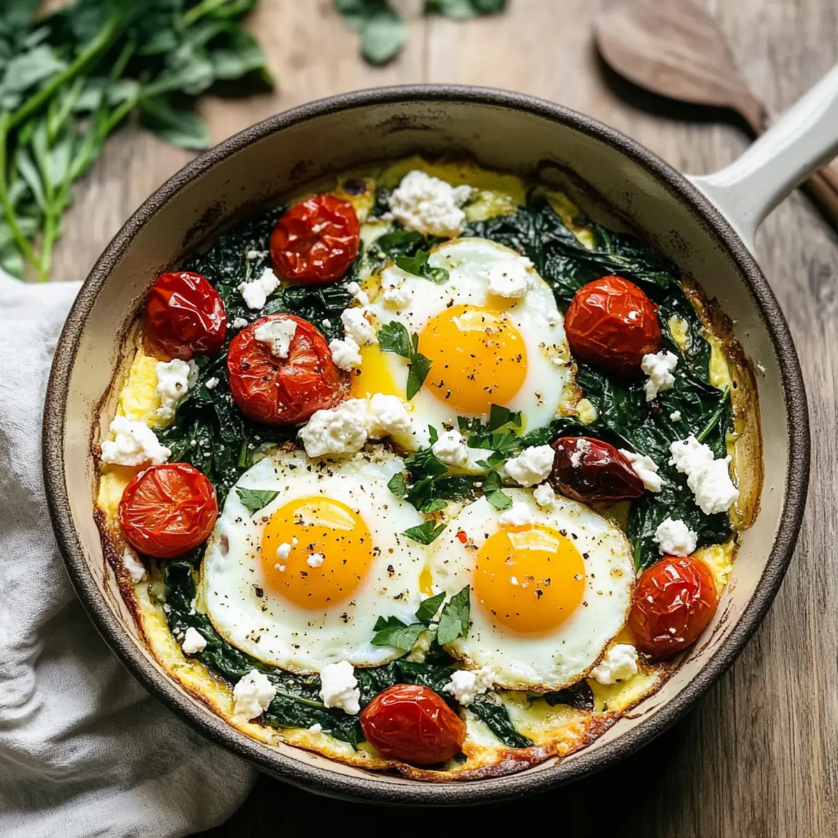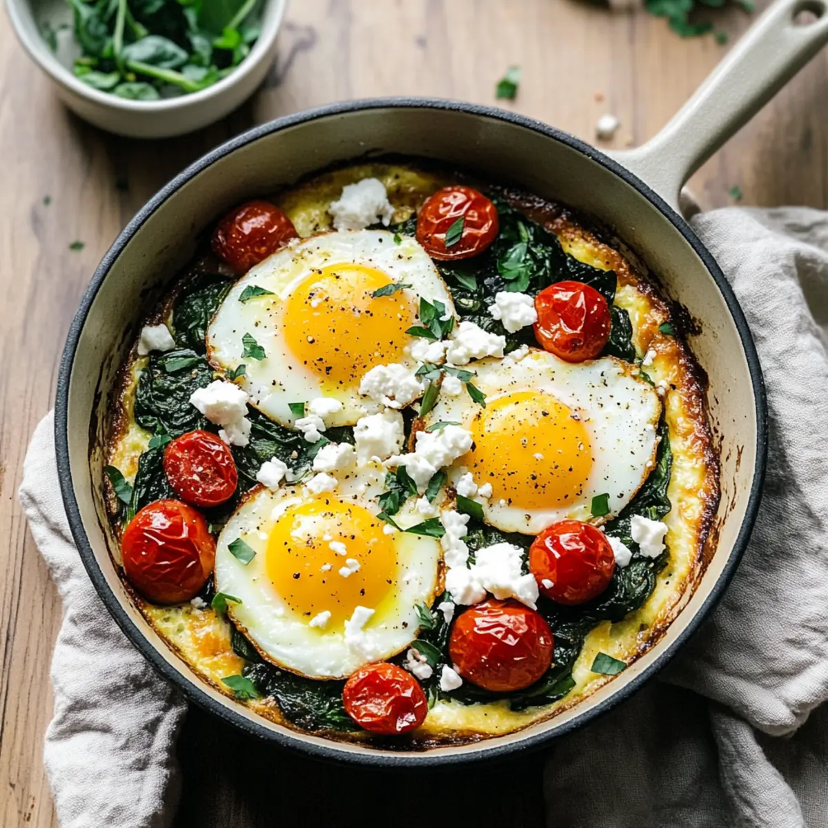 While the tomatoes roast, heat a skillet over medium heat and add a splash of olive oil. Once hot, add fresh spinach and sauté for 2-3 minutes until wilted, seasoning with salt and black pepper as you go. This quick cooking will keep the spinach vibrant while adding depth to your Baked Eggs Napoleon.
