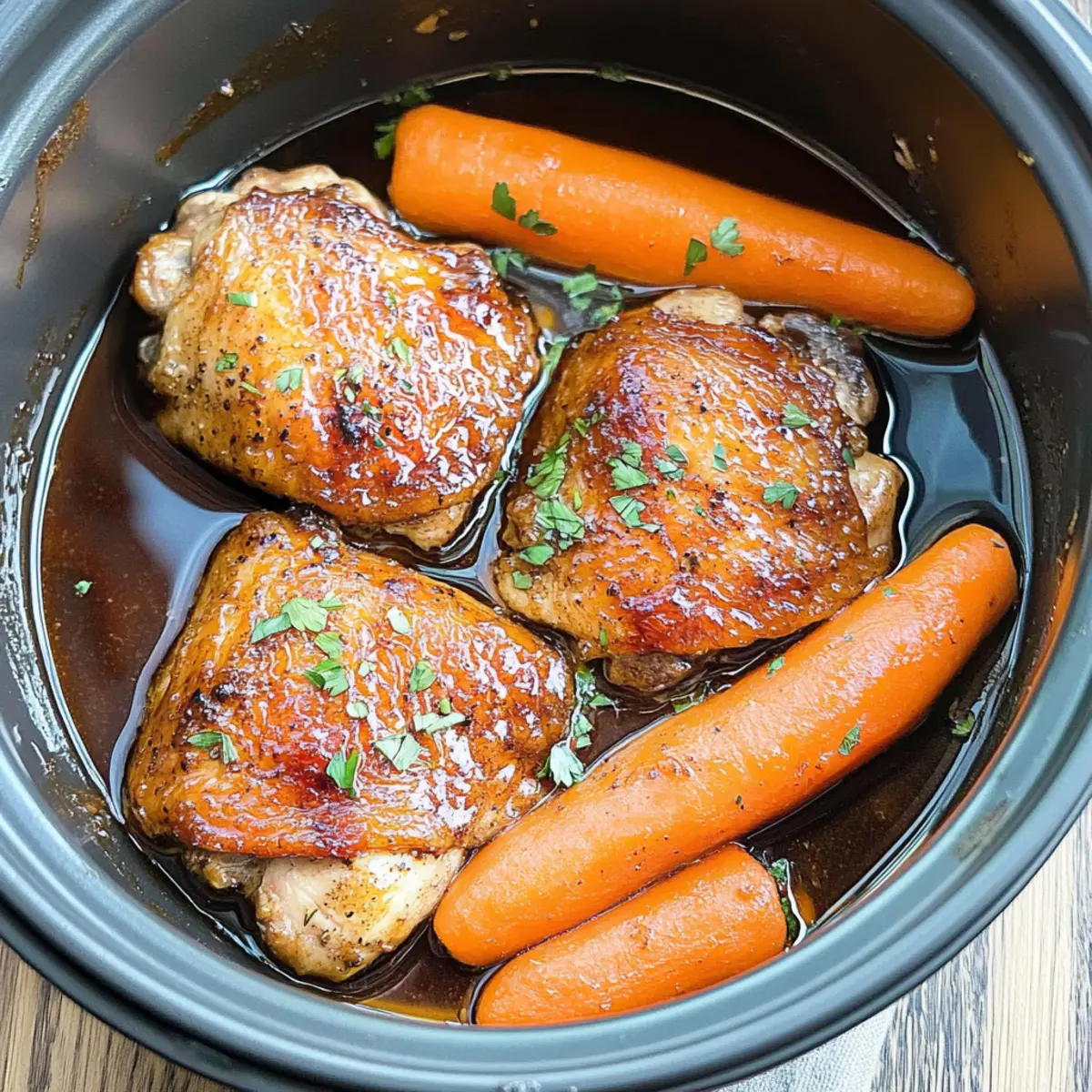 As I stood in my kitchen, the soothing scent of simmering balsamic wafted through the air, promising a comforting meal ahead. This Slow Cooker Balsamic Chicken with Carrots has quickly become a staple for my weeknight dinners. It’s budget-friendly and simplifies meal prep, allowing me to focus on the joys of cooking without the fuss. Tender chicken thighs bask in a luscious balsamic sauce while carrots lend their natural sweetness, creating a savory dish that’s perfect for busy families or anyone craving a wholesome homemade dinner. The best part? You can toss everything in the slow cooker and let it work its magic while you unwind. So, are you ready to transform your dinner routine with this easy recipe?