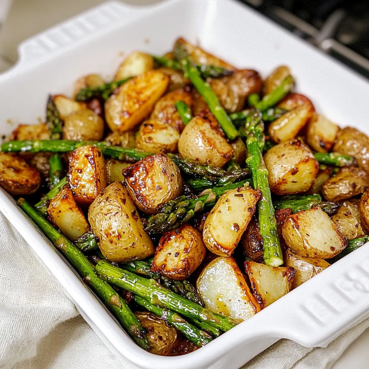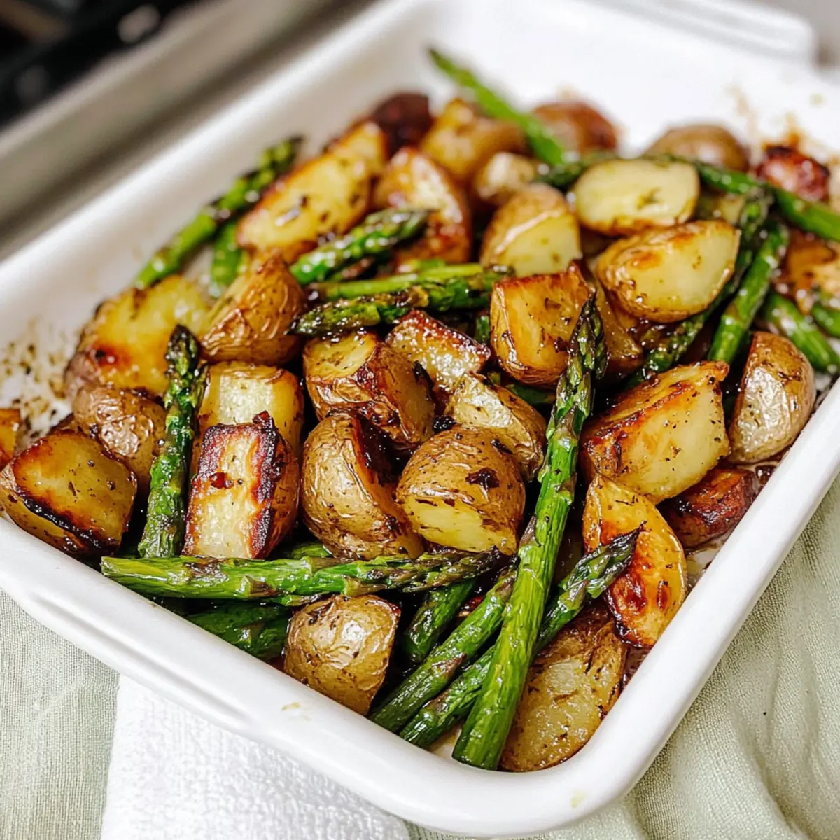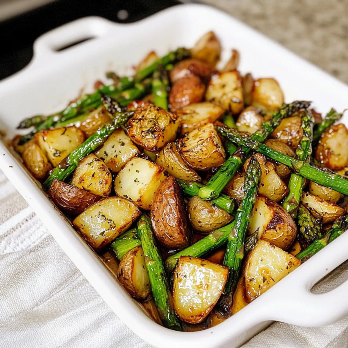 To elevate the flavors even further, consider sprinkling some dried herbs such as rosemary or thyme over the potatoes and asparagus before roasting. This can introduce an aromatic touch that beautifully complements the balsamic glaze! Another option is to finish the dish with a squeeze of fresh lemon juice right before serving, adding brightness and acidity.