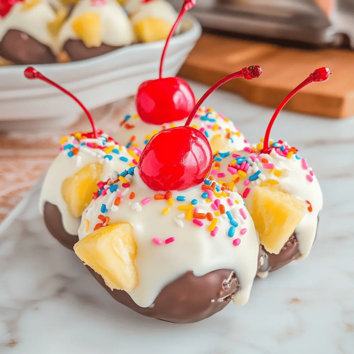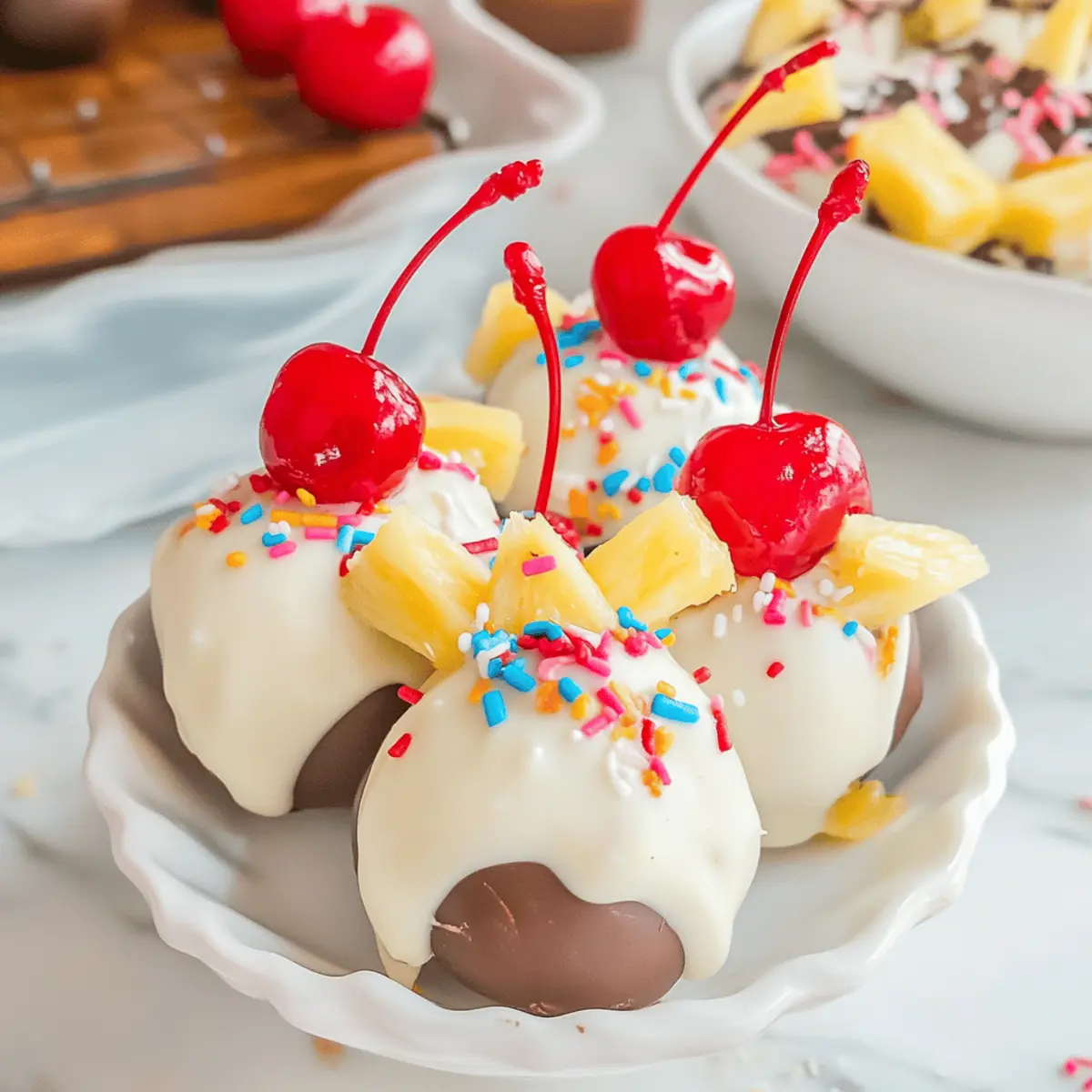 Delicious no-bake Banana Split Truffles are a fun and easy dessert that captures the essence of the classic treat.