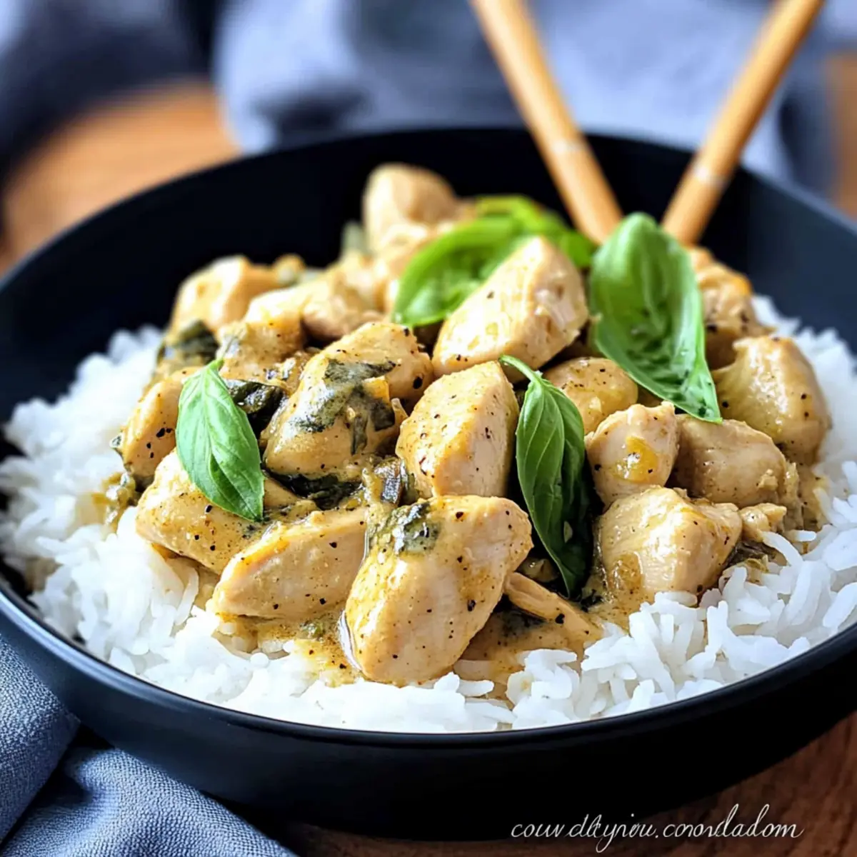 A delightful Basil Chicken with Curry Sauce that combines tender chicken, creamy coconut base, and fragrant basil, ideal for family dinners.