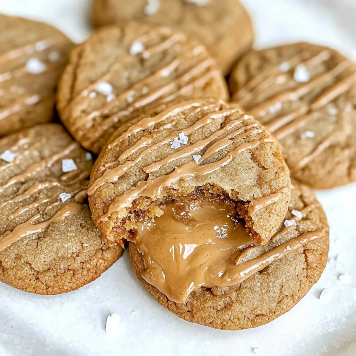 - Drizzle and Sprinkle: Remove from oven, drizzle melted Biscoff over cookies, and sprinkle with flaked salt.