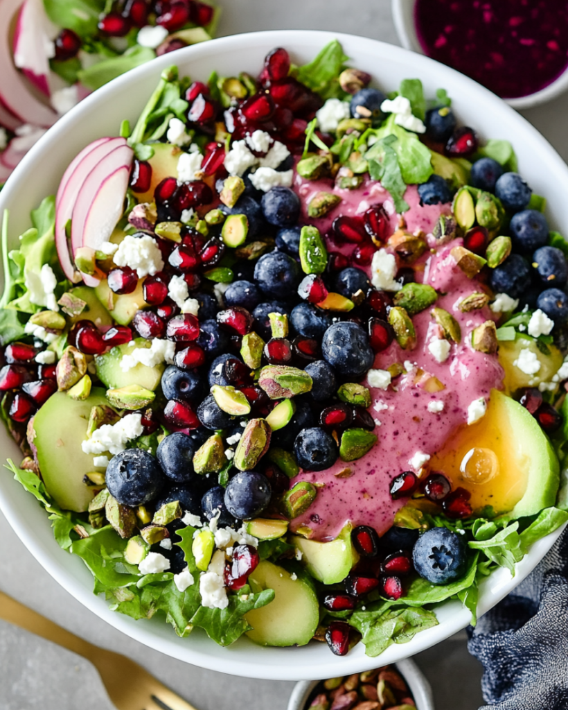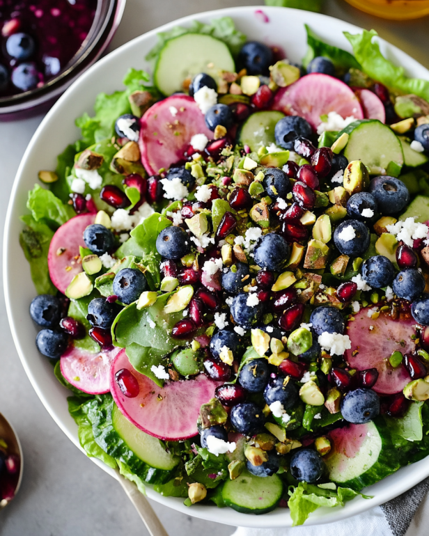 Blueberry Pistachio Salad with Pomegranate Dressing that is not only delicious but also visually stunning. Enjoy the process of making this delightful dish, and don’t hesitate to share it with family and friends!