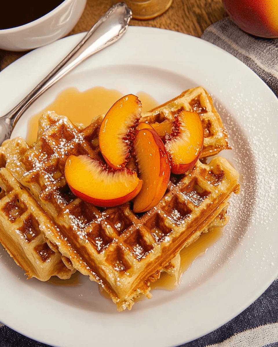 What’s the best way to serve these waffles? Serve them warm, topped with the macerated peaches and a drizzle of maple syrup. A dollop of whipped cream or a sprinkle of nuts can elevate the experience even more!