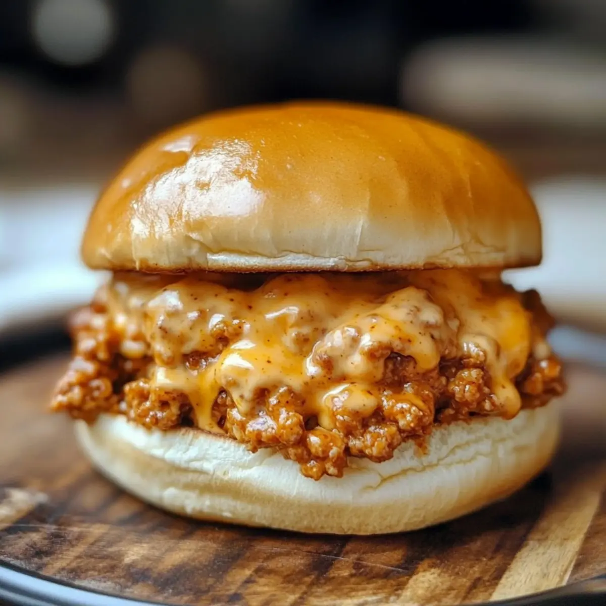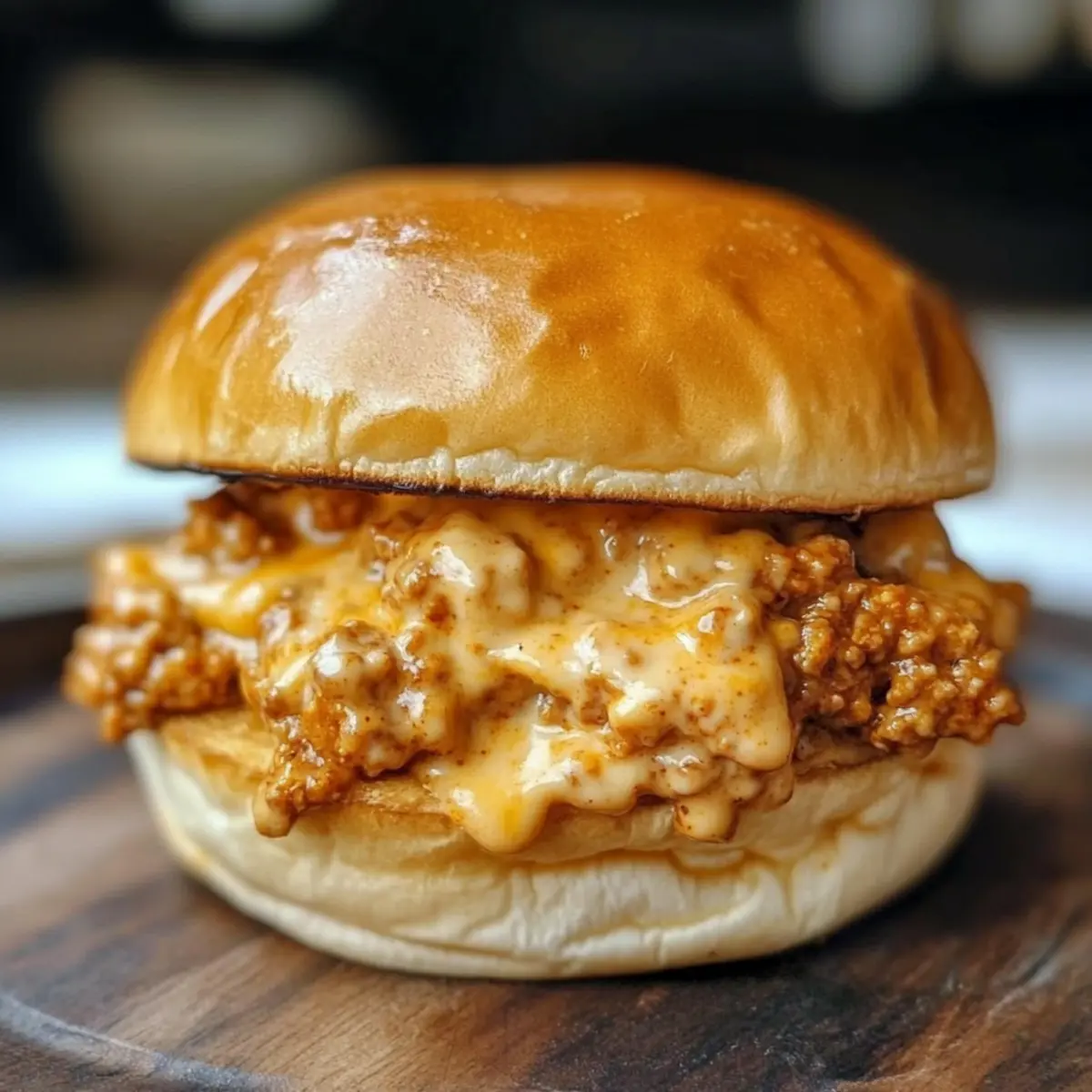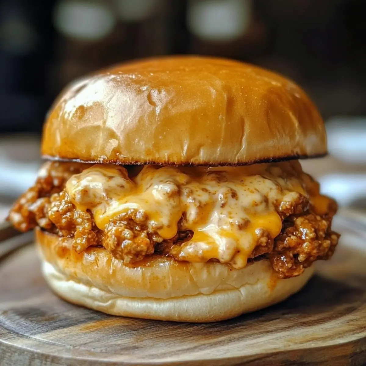 While the cheese sauce is finishing, butter the cut sides of the brioche hamburger buns. Toast them in a pan or under the broiler until they are golden brown and crispy, which should take about 2-3 minutes. This step adds a delightful crunch that complements the rich filling of the Cajun Chicken Sloppy Joes.