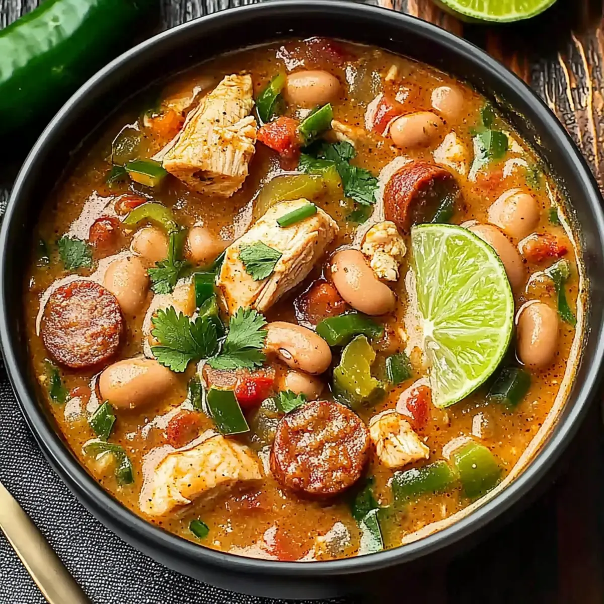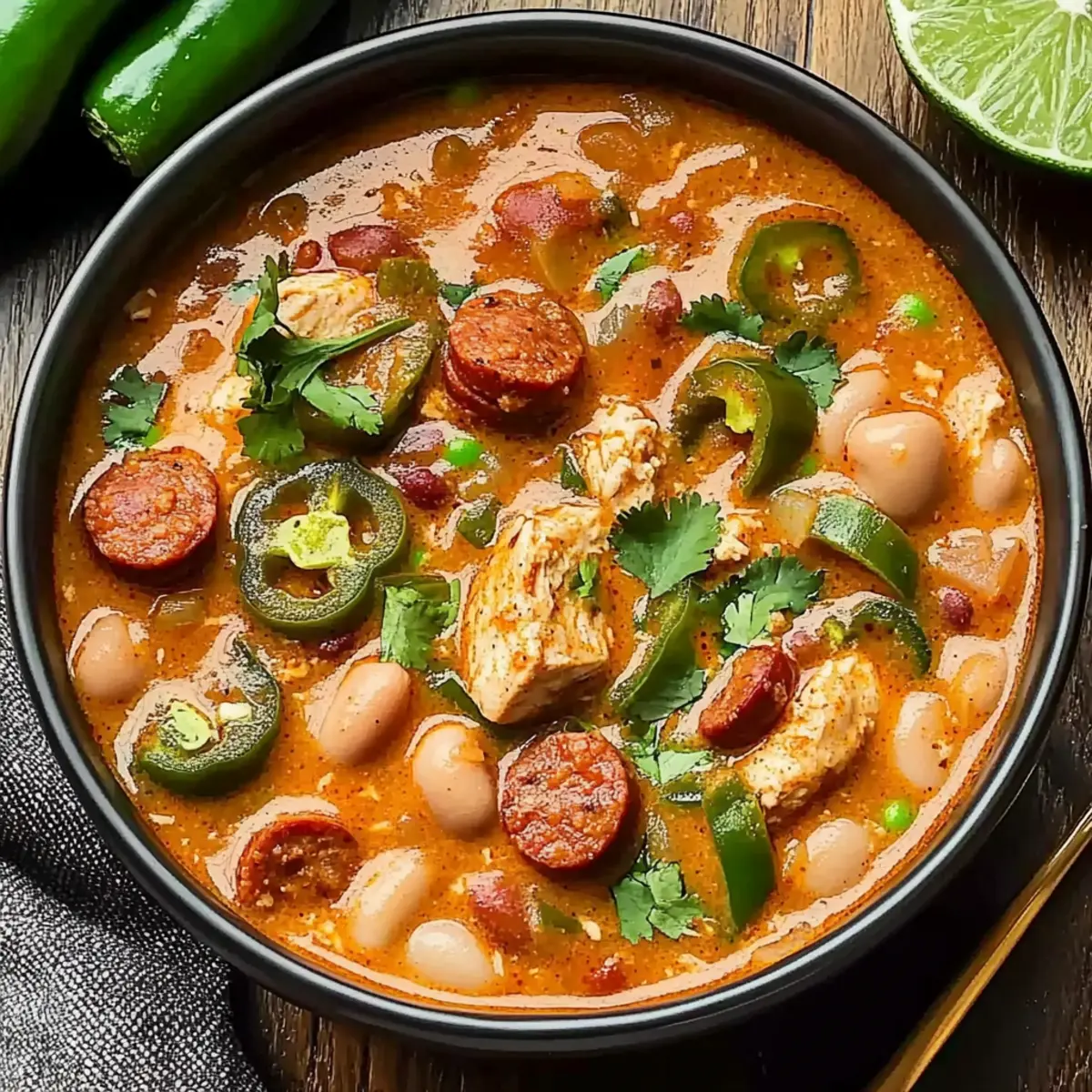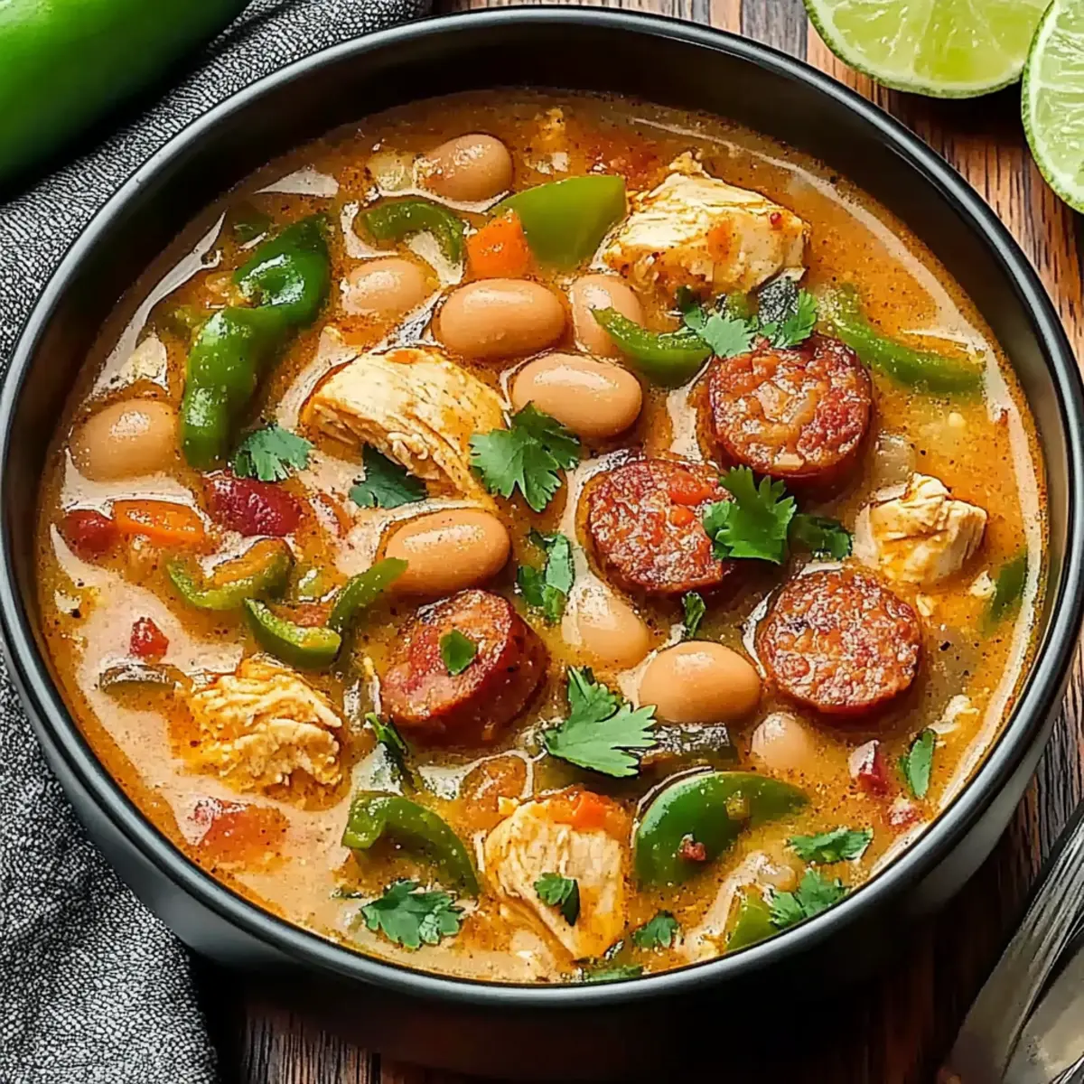 - Vegetarian Twist: Swap out the chicken and sausage for hearty mushrooms and bell peppers, keeping the chili rich and flavorful.