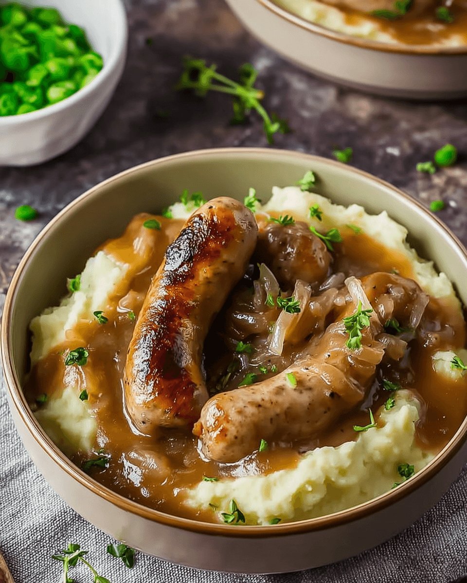 Sausages and Onion Gravy with Mashed Potatoes is a must-try!