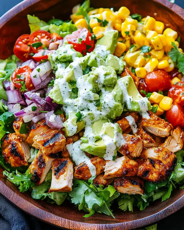 BBQ Chicken Salad with Avocado Dressing is deliciously healthy.