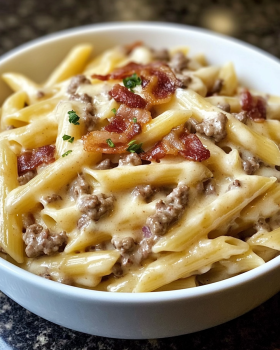 Loaded Bacon Cheeseburger Alfredo Pasta Recipe is delicious!