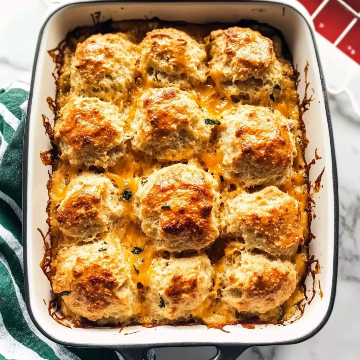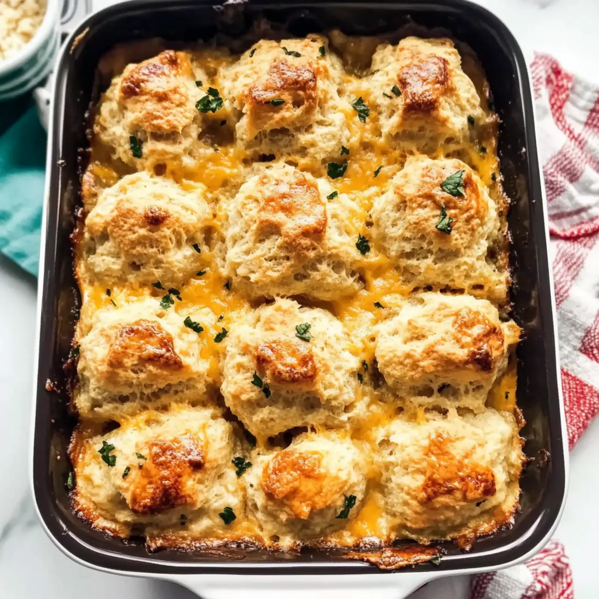 - Biscuit Base Variant: Try chicken and biscuits as an alternative topping using homemade biscuit dough instead of the Cheddar Bay mix for a personal touch. It’s a classic delight!