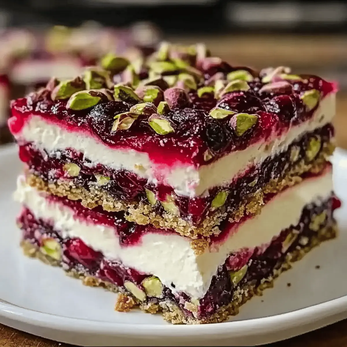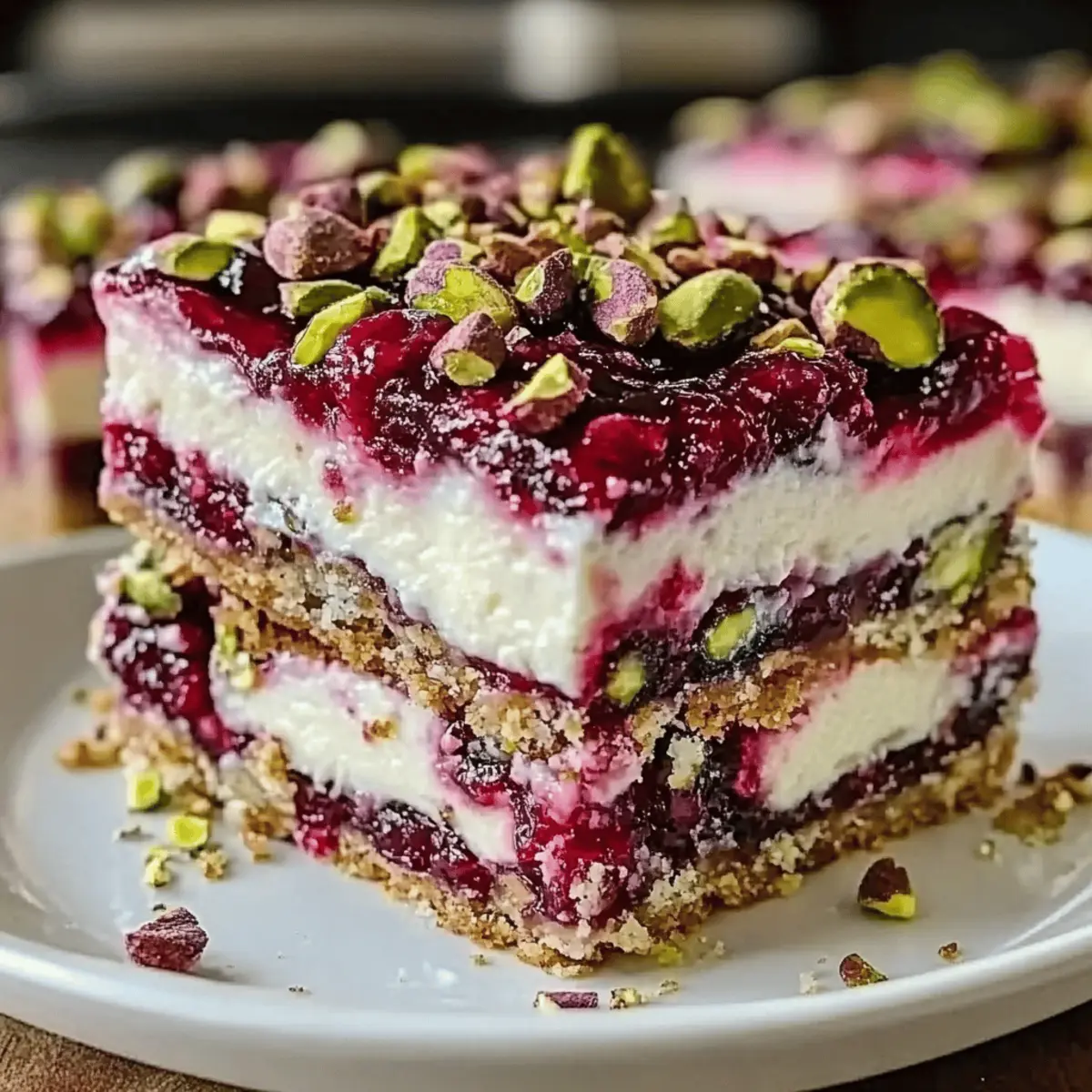 • Layered Bars: Create a layered dessert by adding a thick layer of whipped cream on top after you chill the bars; sprinkle with extra crushed pistachios for crunch. This adds an extra level of indulgence!