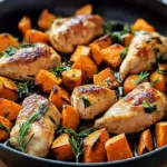 This Chicken and Sweet Potato Skillet is the perfect one-pan meal—savory, hearty, and full of comforting flavors. With seasoned chicken, caramelized sweet potatoes, and fragrant aromatics, this dish is easy to prepare, packed with nutrition, and perfect for busy weeknights.