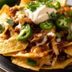 Irresistible chicken nachos layered with crispy tortilla chips, tender shredded chicken, gooey melted cheese, and fresh toppings. Perfect for game nights, family dinners, or casual gatherings, this recipe combines savory, spicy, and creamy flavors in every bite.