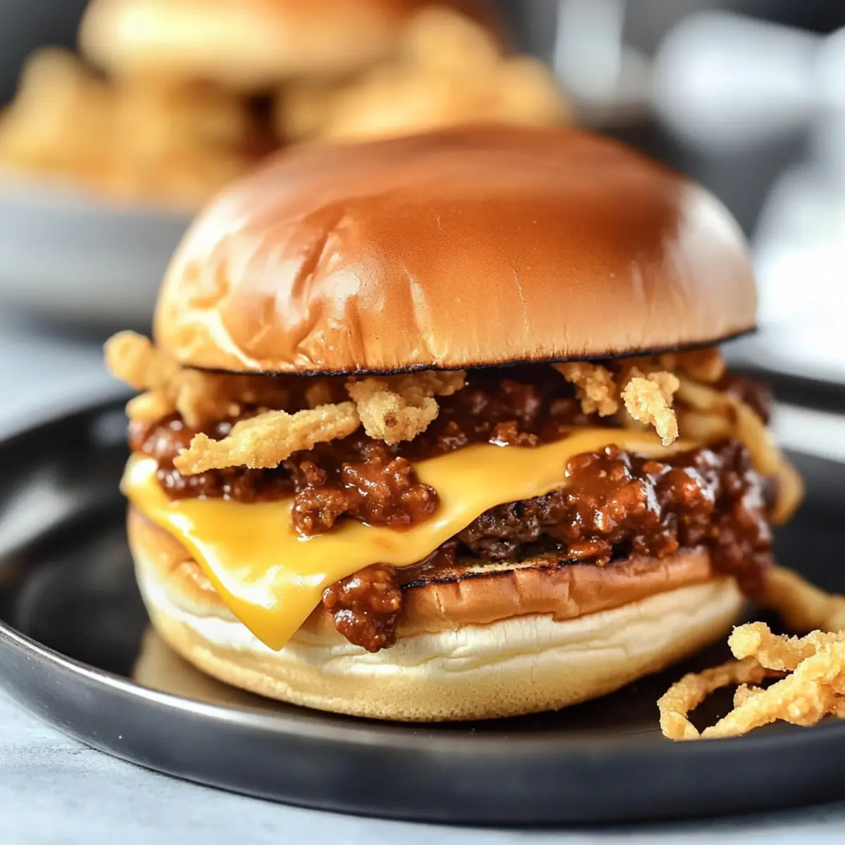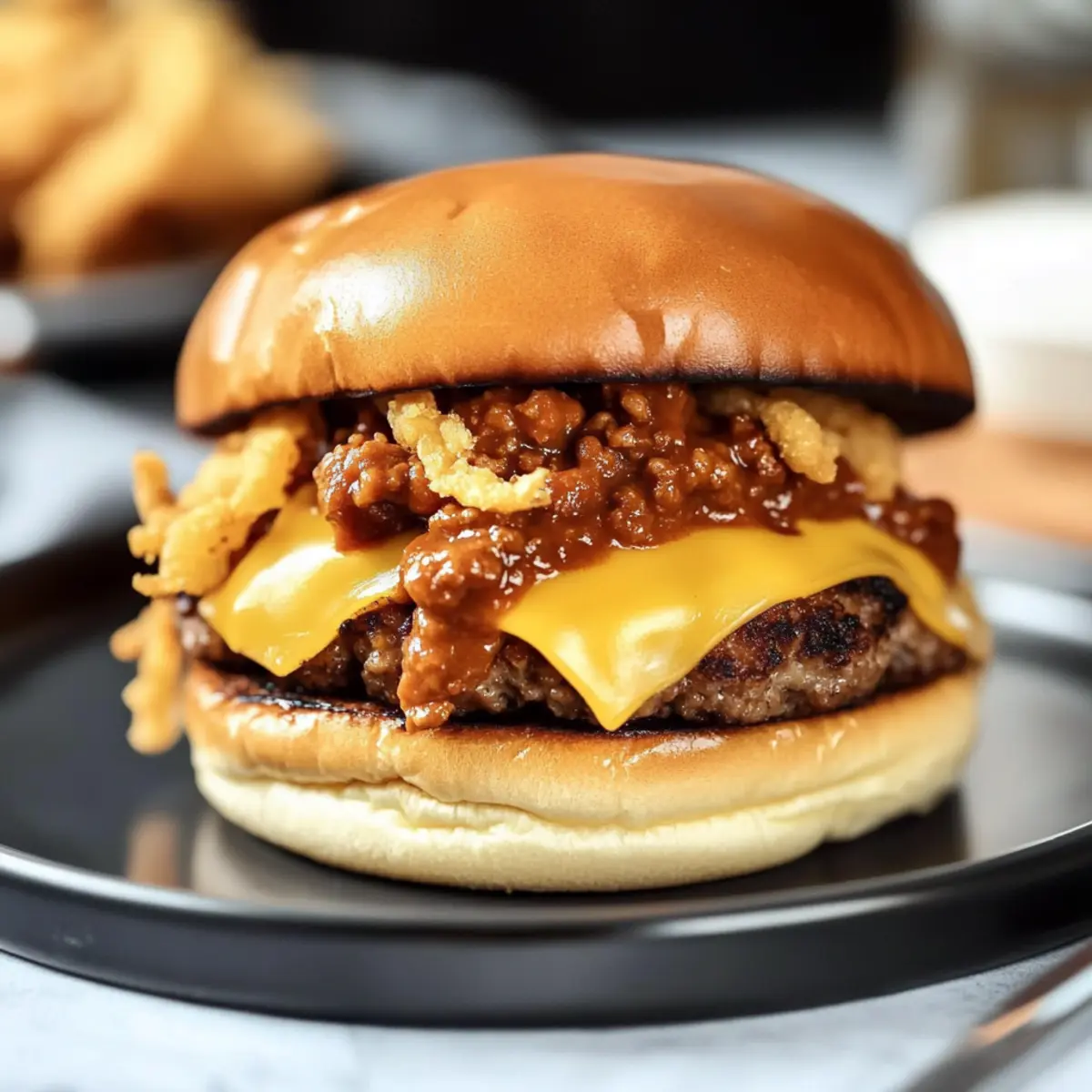 Seductive Chili Cheeseburgers with Crispy Onion Crunch