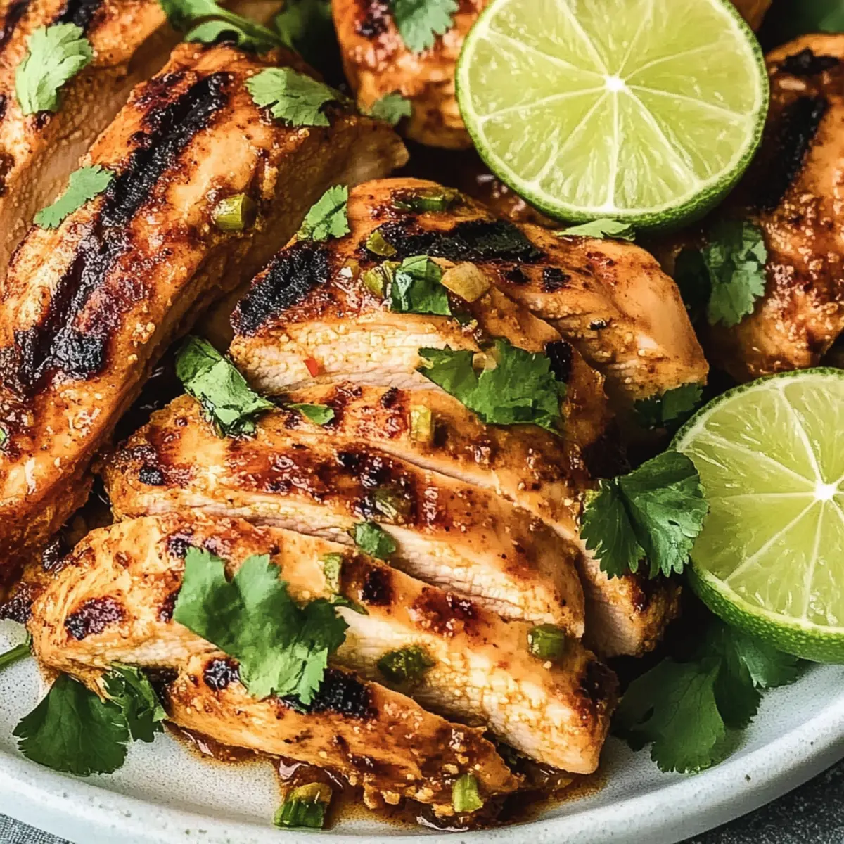 After grilling, remove the chicken from the heat and let it rest for 5 minutes to allow juices to redistribute. This step ensures your Chili Lime Chicken remains juicy and flavorful. Slice the chicken against the grain and serve with your choice of rice, fresh salad, or grilled vegetables for a delightful meal.