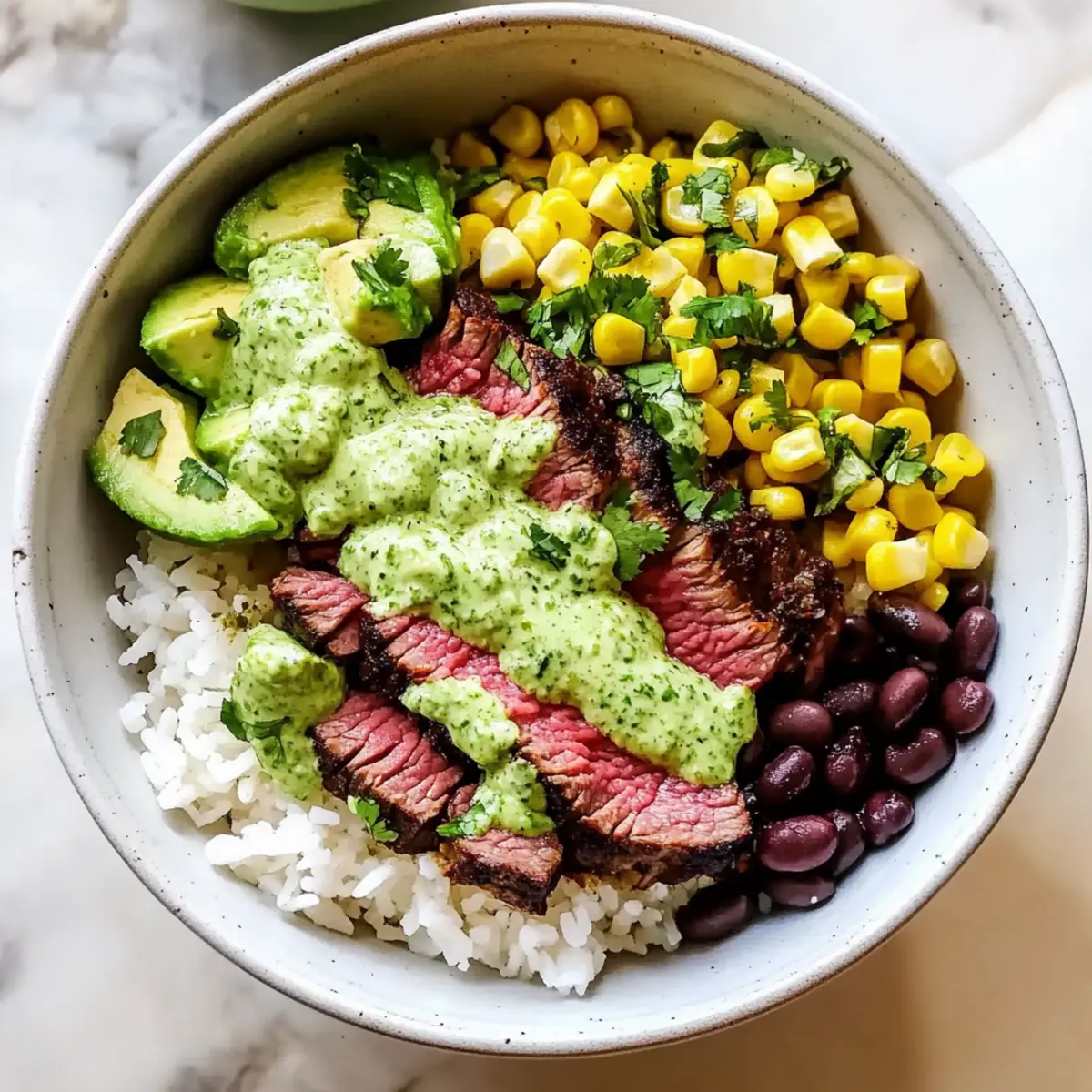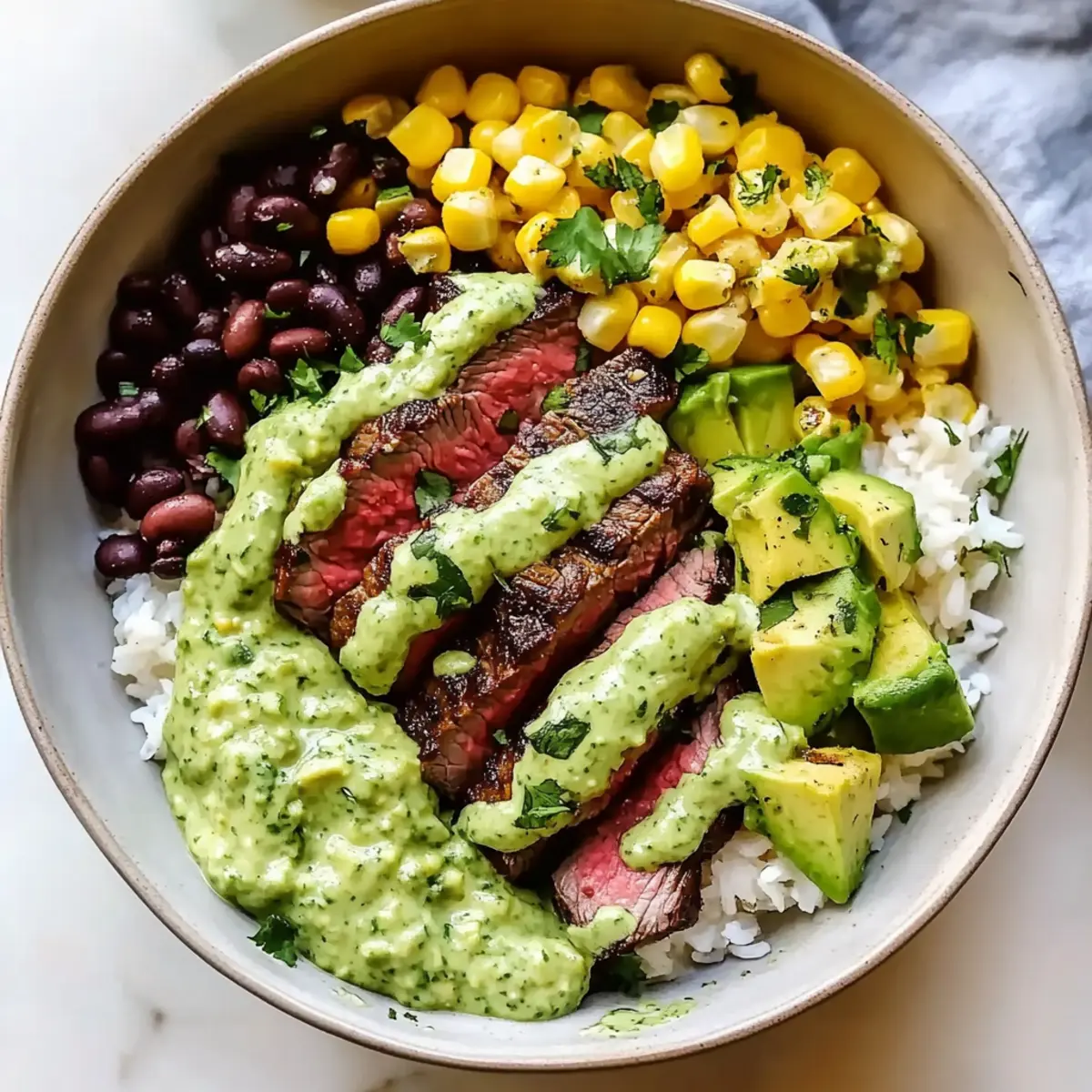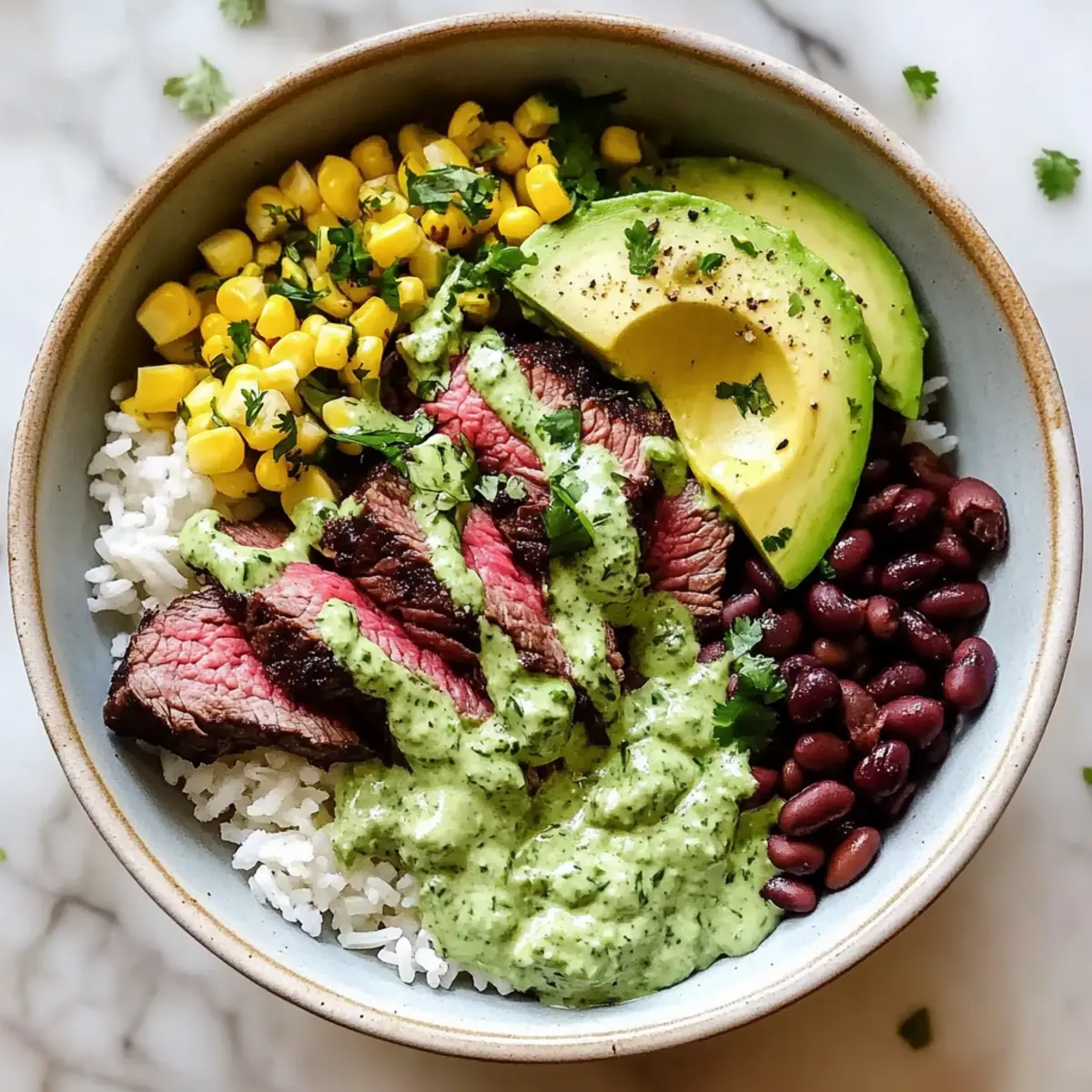 Drizzle the cilantro lime crema over each assembled bowl, adding a touch of creaminess and tang that complements the vibrant ingredients. Garnish with extra cilantro, lime wedges, and any additional toppings like queso fresco or smoked paprika if desired, making your Cilantro Lime Steak and Rice Bowls not just a meal, but a feast for the eyes.