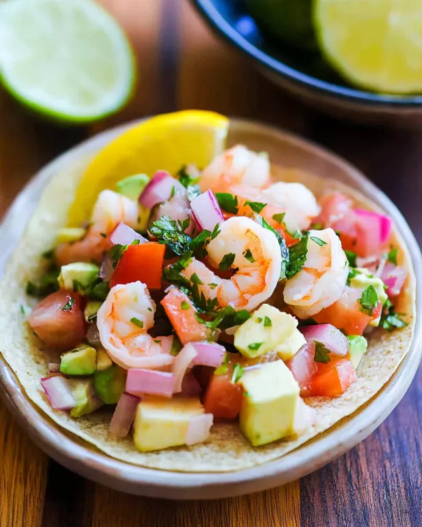 After mixing, it’s time to taste your ceviche. Adjust the seasoning by adding salt, black pepper, or more lime juice if needed. Once you’re satisfied with the flavor, it’s ready to serve! Chill the ceviche in the refrigerator for a little longer if you prefer it extra cold. When serving, top each portion with diced avocado for creaminess. Pair it with crispy tortilla chips for a delightful crunch. Enjoy your refreshing citrus shrimp ceviche as a perfect appetizer or light meal!