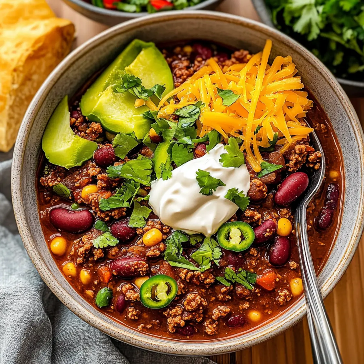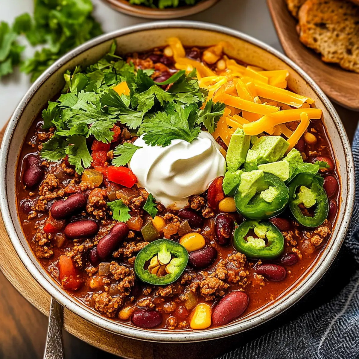 • Creamy Cornbread: Ideal for soaking up the savory chili, cornbread adds a hint of sweetness that perfectly balances the spice. A warm slice fresh out of the oven will prompt seconds!