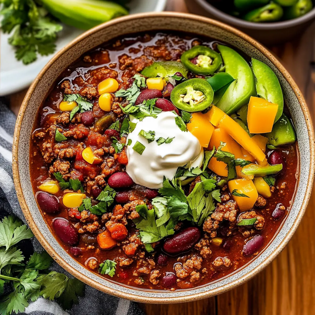 • Sour Cream: A dollop of sour cream provides a cool contrast to the warmth of the chili, balancing the spices and adding a creamy finish that’s simply irresistible.
