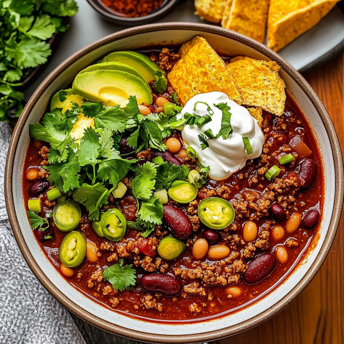 • Tortilla Chips: Crisp and salty, tortilla chips are ideal for scooping up that hearty chili. Their crunch adds an enjoyable bite and can be an exciting topping too!