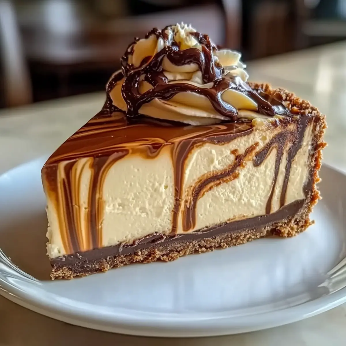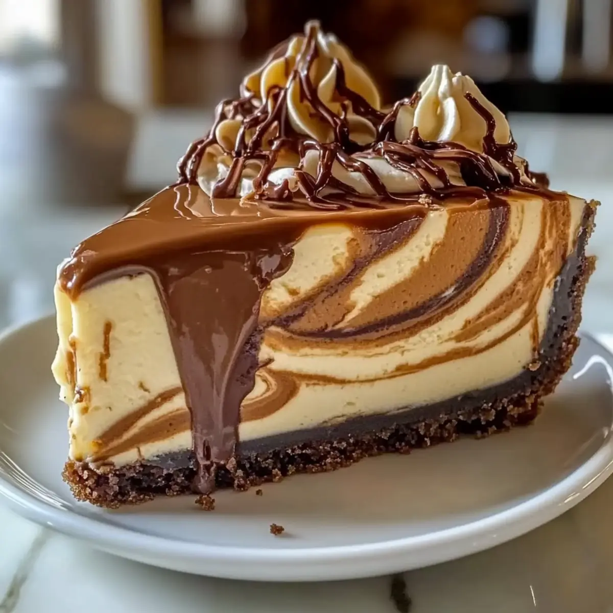 When ready to serve, remove the cheesecake from the springform pan. Top with optional whipped cream, a dusting of cocoa powder, or chocolate shavings for an elegant finish. Each slice will reveal the beautiful marbling and rich flavor of your homemade delight, making it a perfect end to any meal!