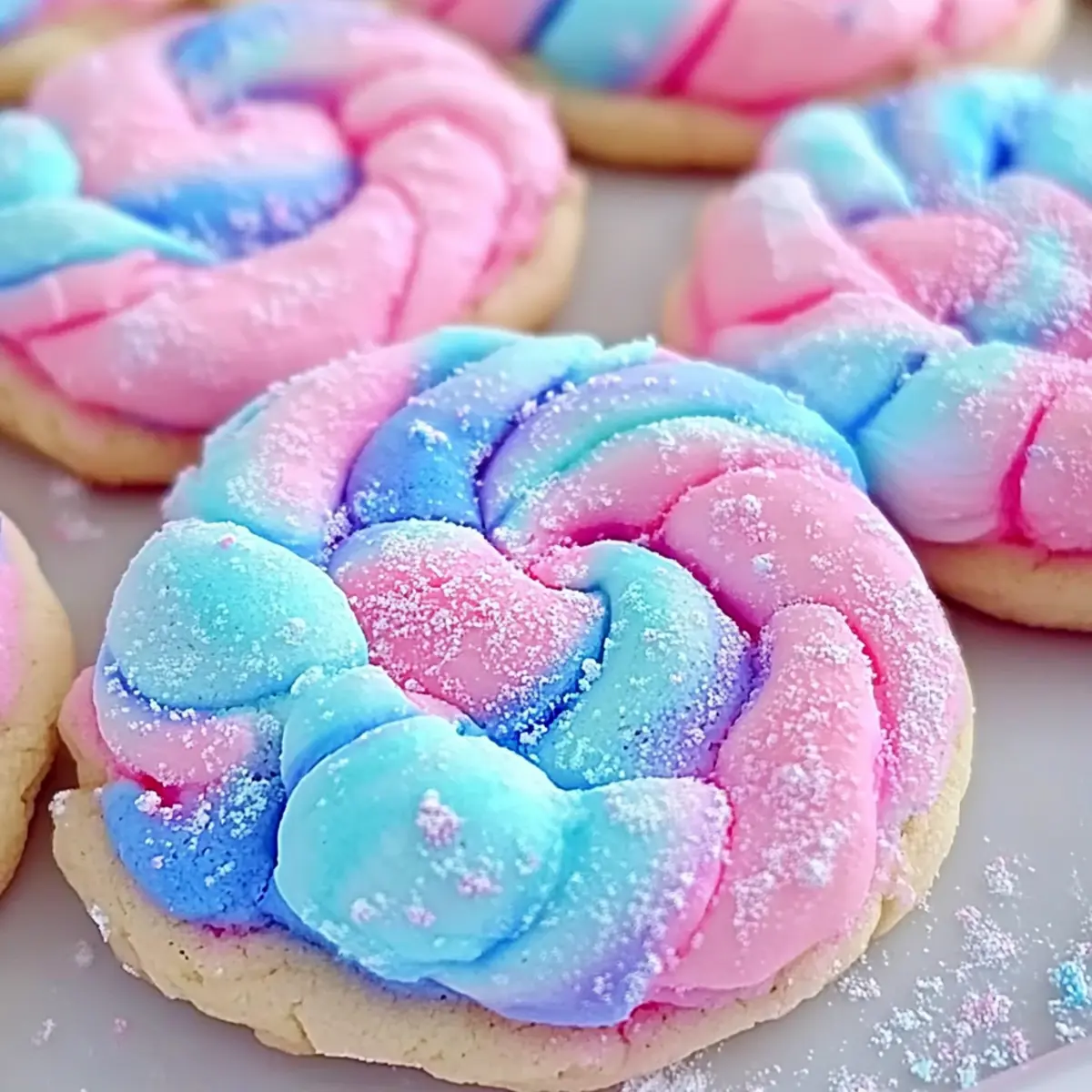 Whimsical Delight: These Cotton Candy Cookies bring a splash of joy to any occasion, with their vibrant colors and playful swirls.