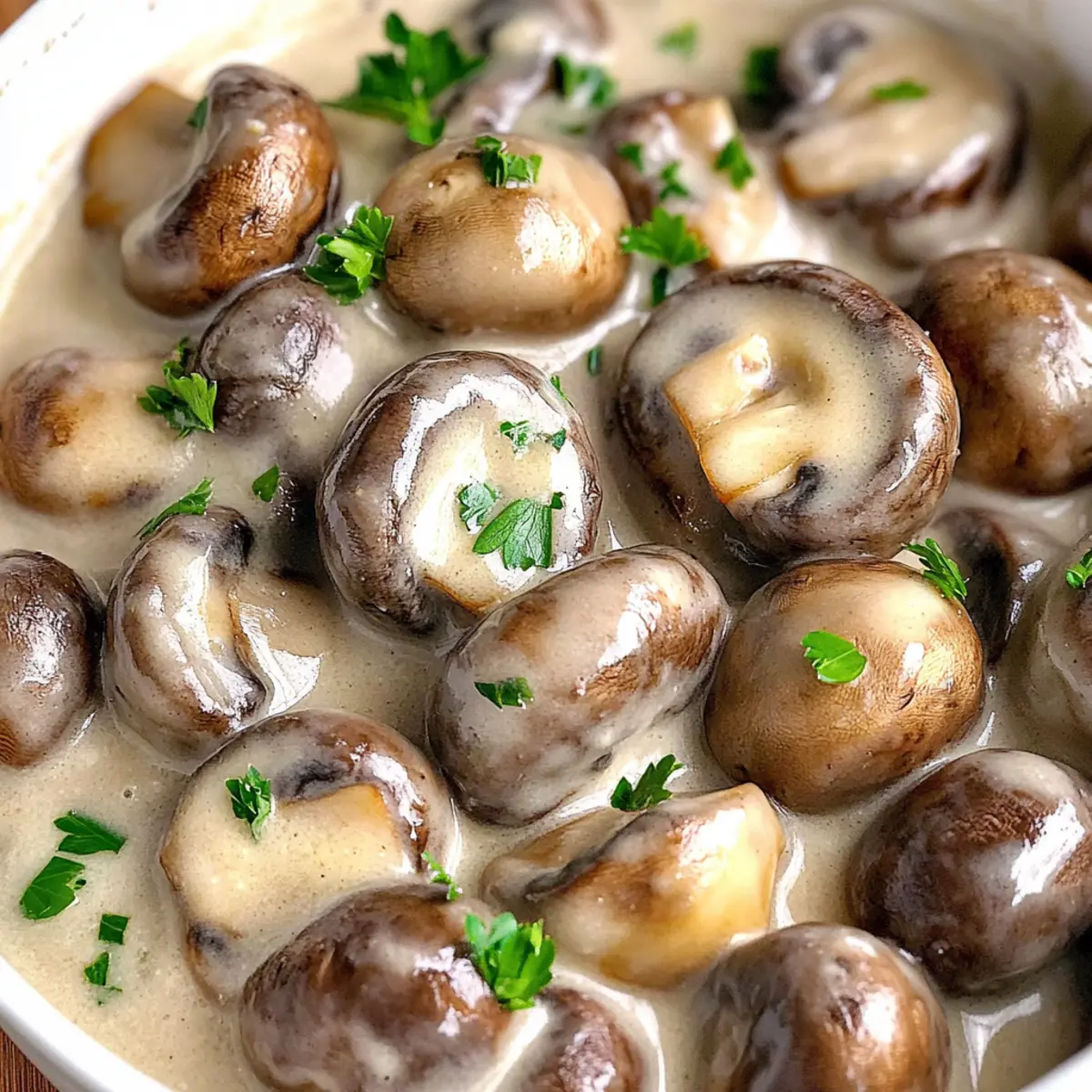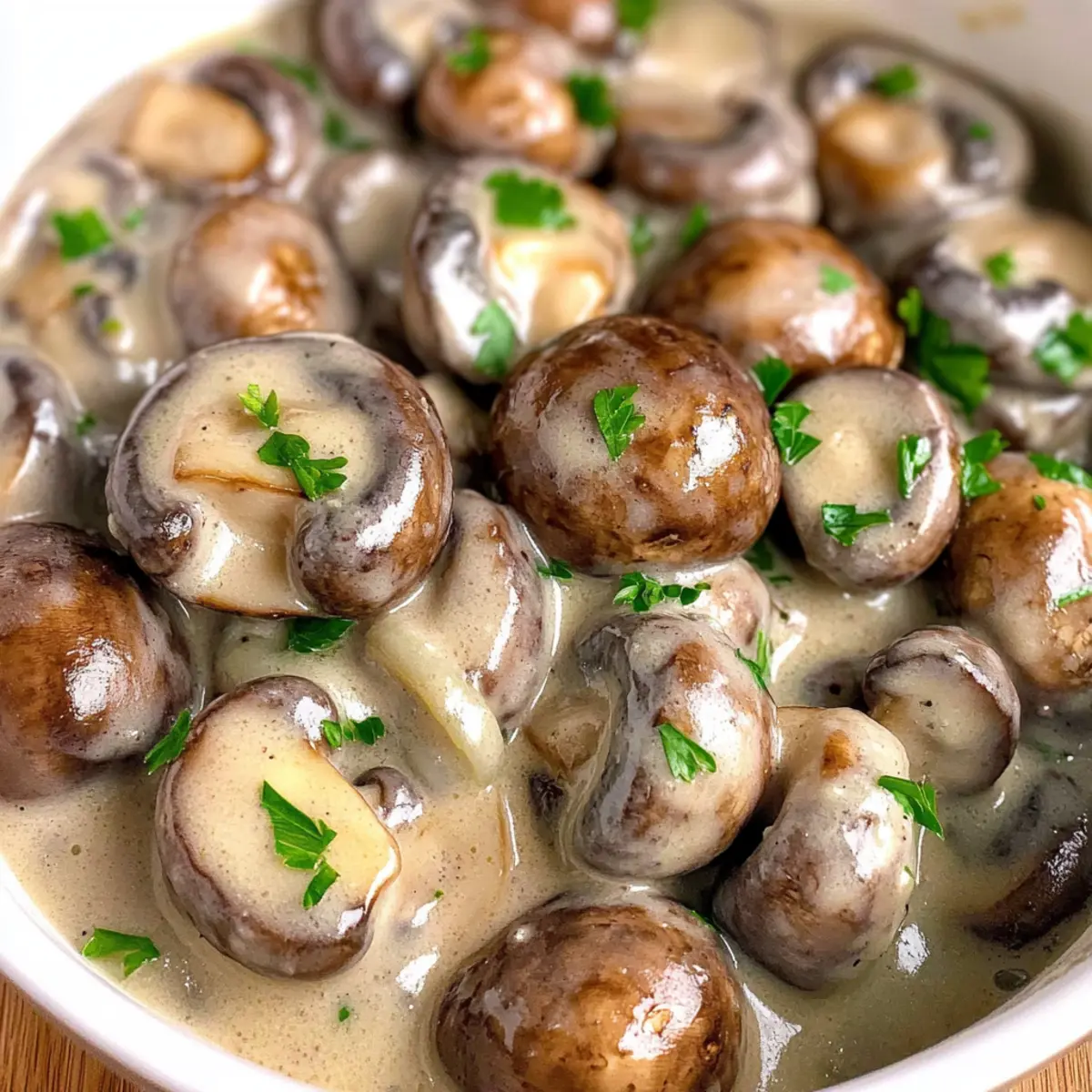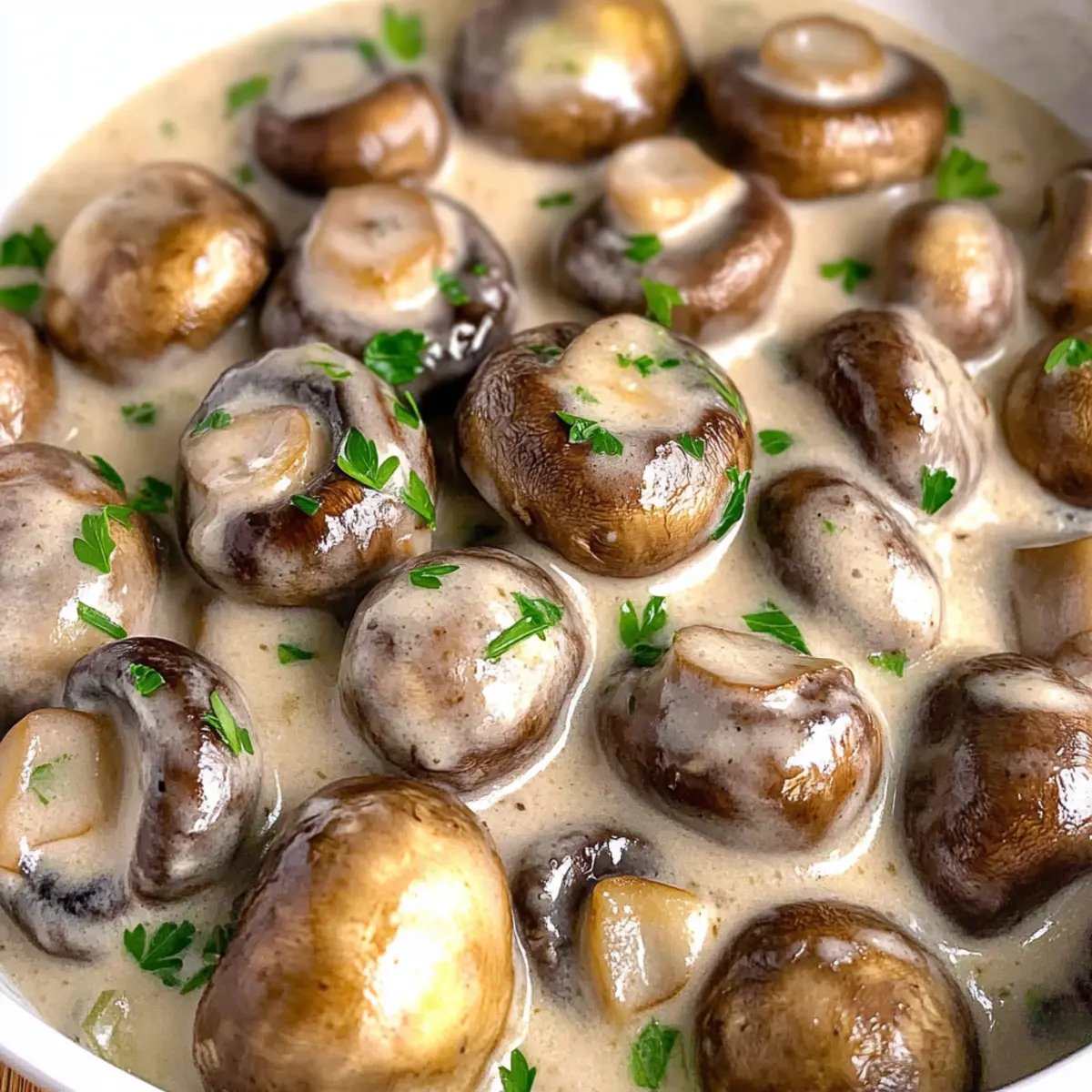 Transfer your creamy garlic mushrooms to plates or toast some bread triangles as a base for an elegant presentation. Garnish generously with finely chopped fresh parsley for a pop of color and freshness. The aromatic blend will draw everyone in, making this delightful dish a true standout at your table.
