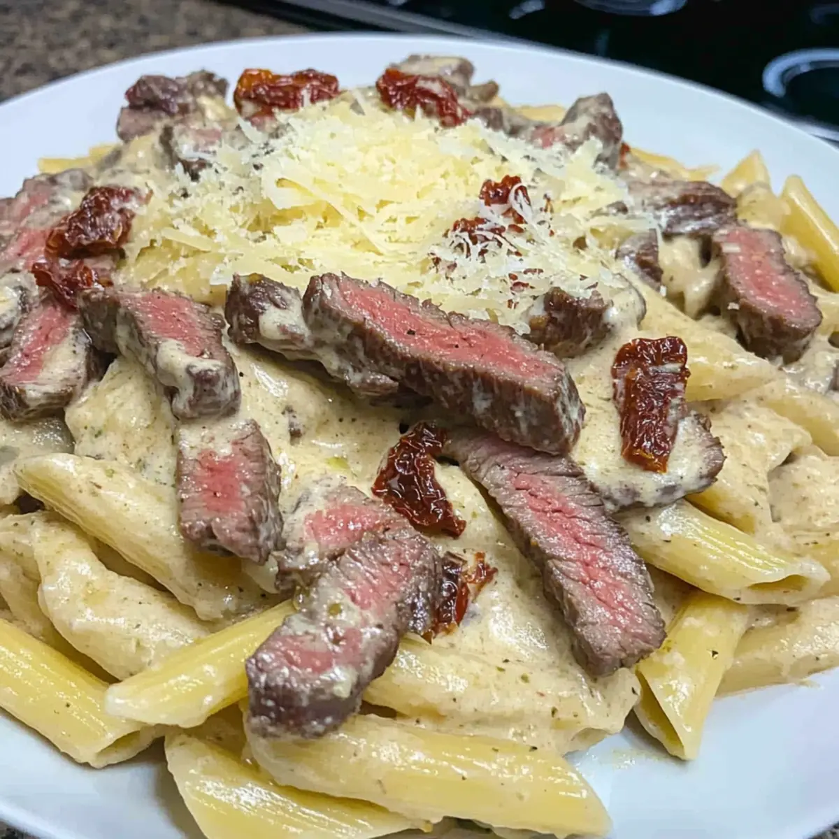 Pasta Shapes: While rigatoni is a classic, try experimenting with other pasta shapes like penne or fettuccine for a unique twist on texture. Each shape can bring a new experience to your creamy steak pasta.