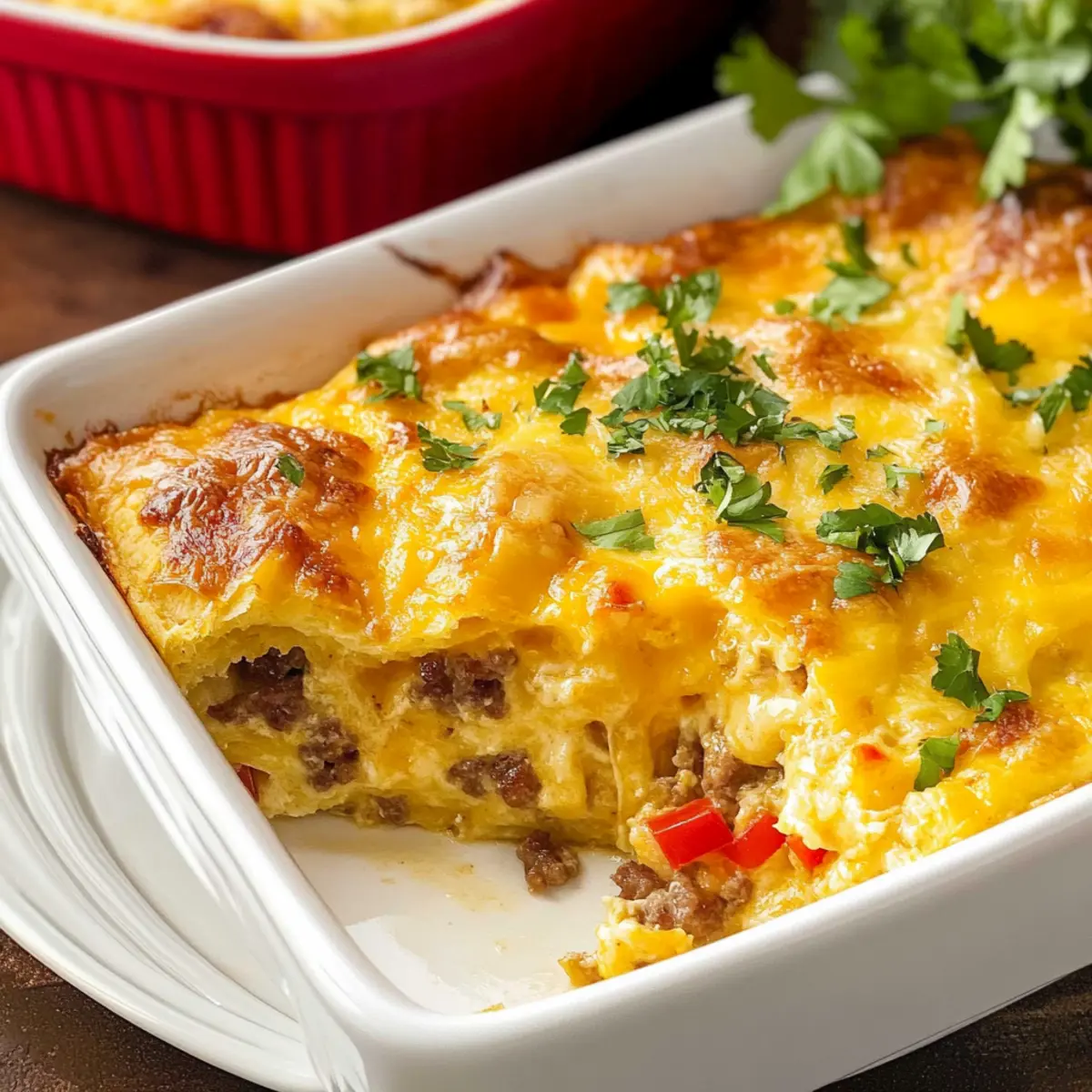 After baking, allow the casserole to cool for about 5 minutes before slicing it into portions. This resting time helps the layers set, making for cleaner slices. Garnish with chopped green onions or fresh parsley if desired, adding a pop of color and flavor to your Cheesy Crescent Roll Breakfast Casserole.