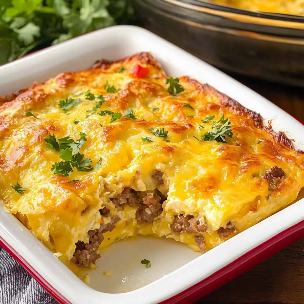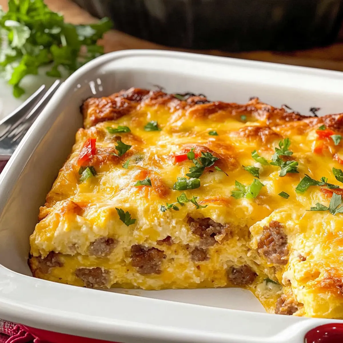 Protein Swap: Replace breakfast sausage with diced ham or crumbled bacon for a hearty alternative. Both options bring a different flavor profile, adding a savory dimension to the casserole.