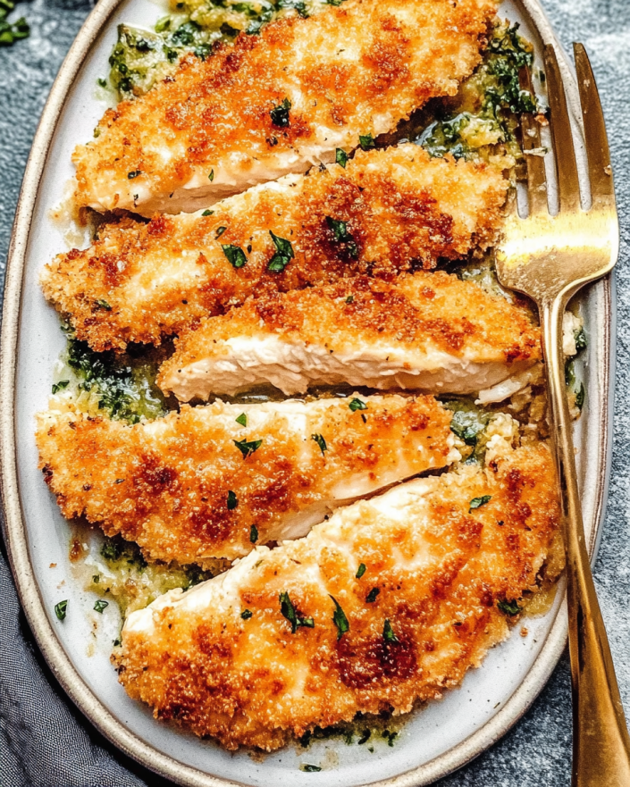 A golden, crunchy baked chicken coated in ranch seasoning, Parmesan, and Panko breadcrumbs. This easy, flavorful recipe delivers crispy perfection without frying.