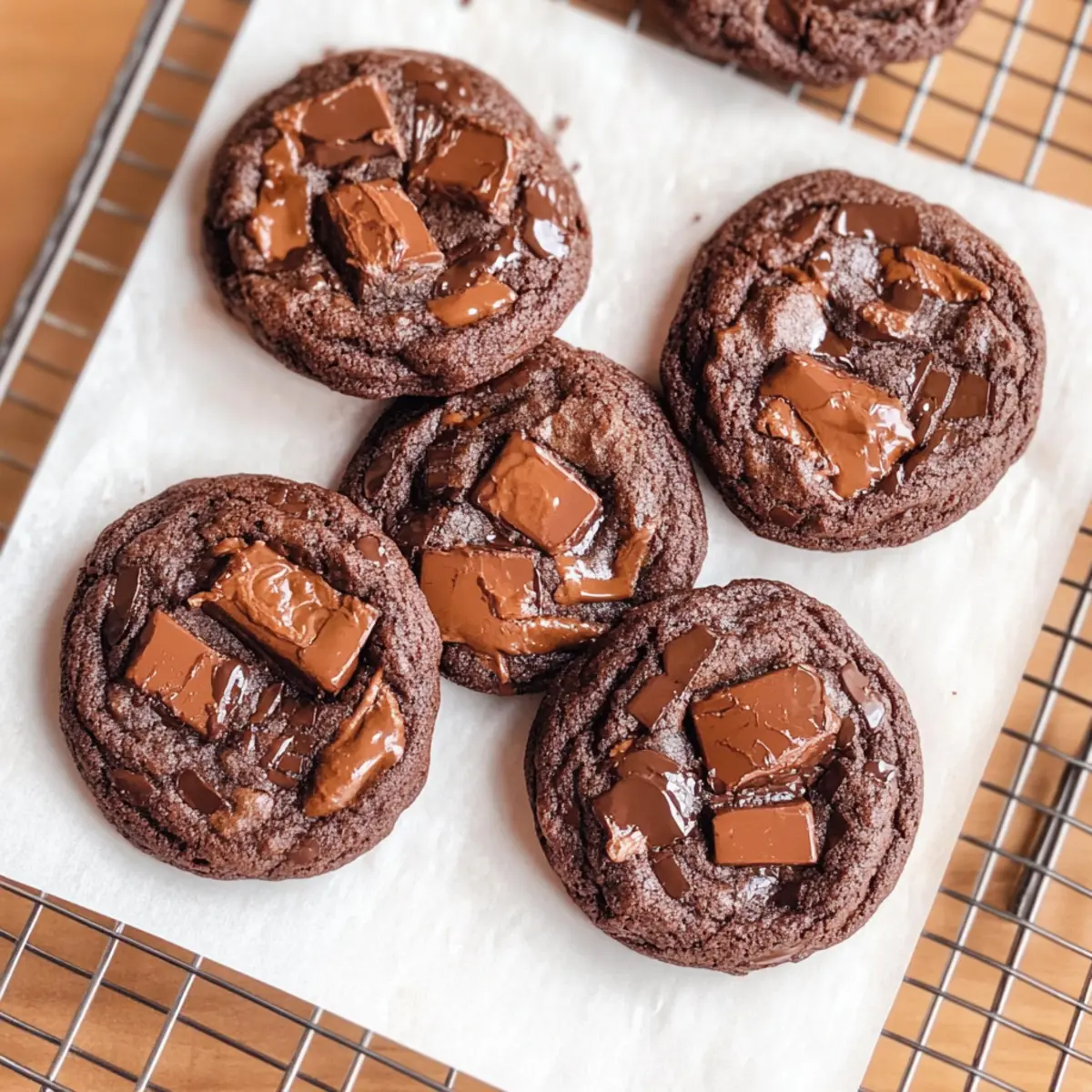 Indulge in these Double Chocolate Chip Cookies that offer a perfect blend of richness and gooeyness in every bite.
