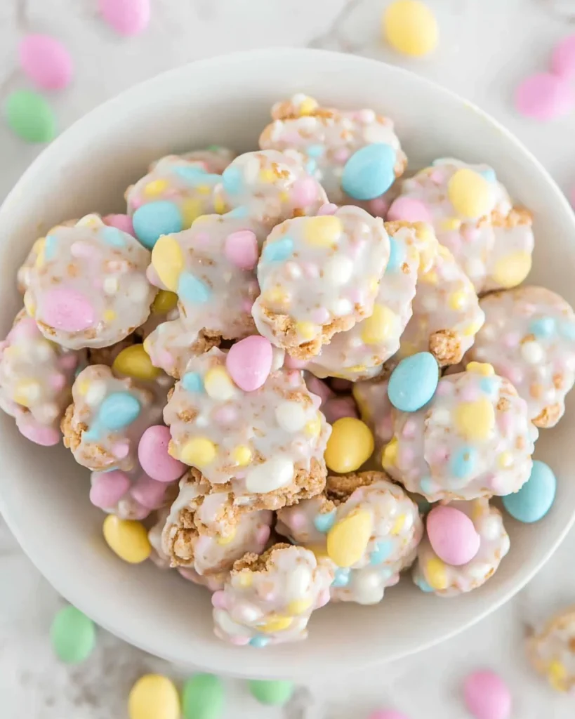 Fill clear treat bags with candy clusters, tie them with pastel ribbons, and gift them to family, friends, teachers, or coworkers. It’s an easy and thoughtful homemade treat that everyone will love.