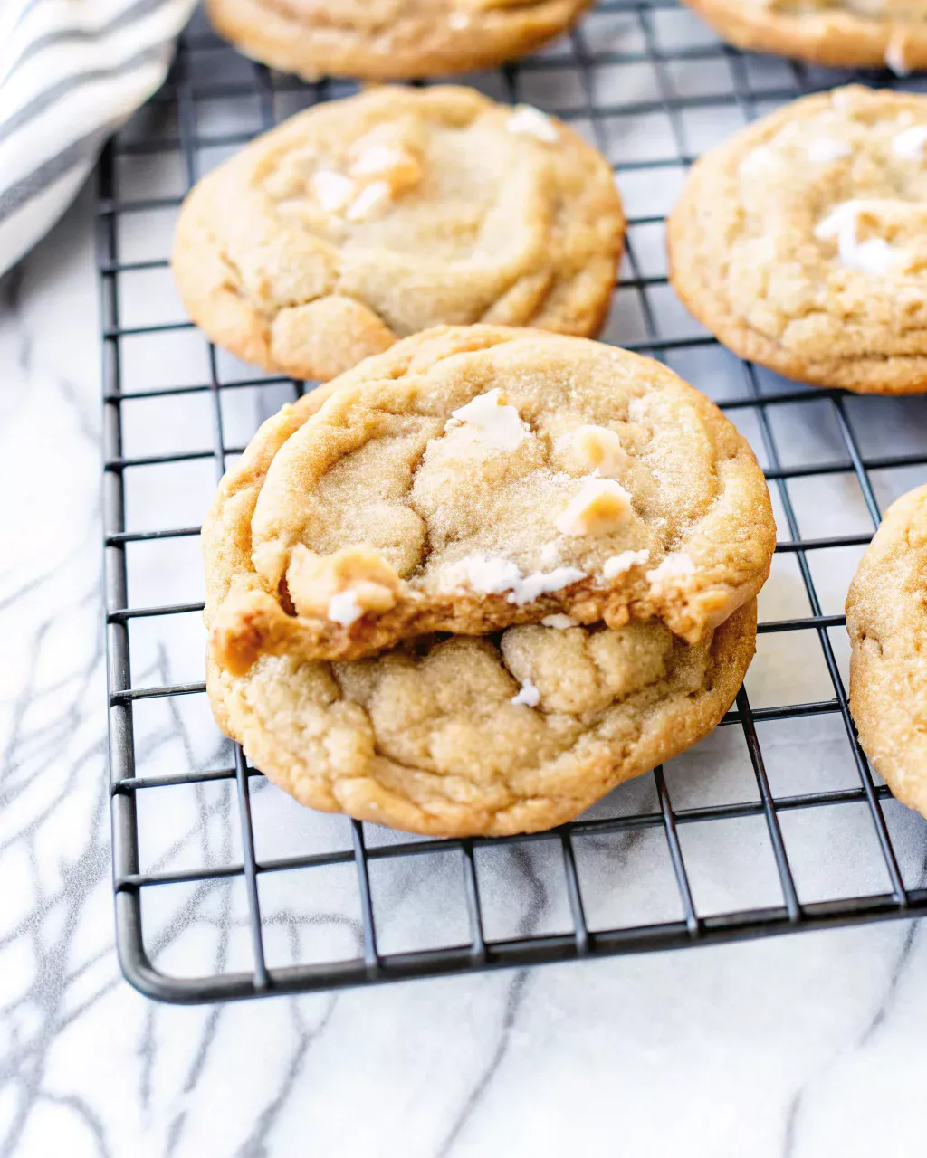 Slightly underbaking the cookies ensures a soft, chewy texture. They’ll continue to set as they cool.