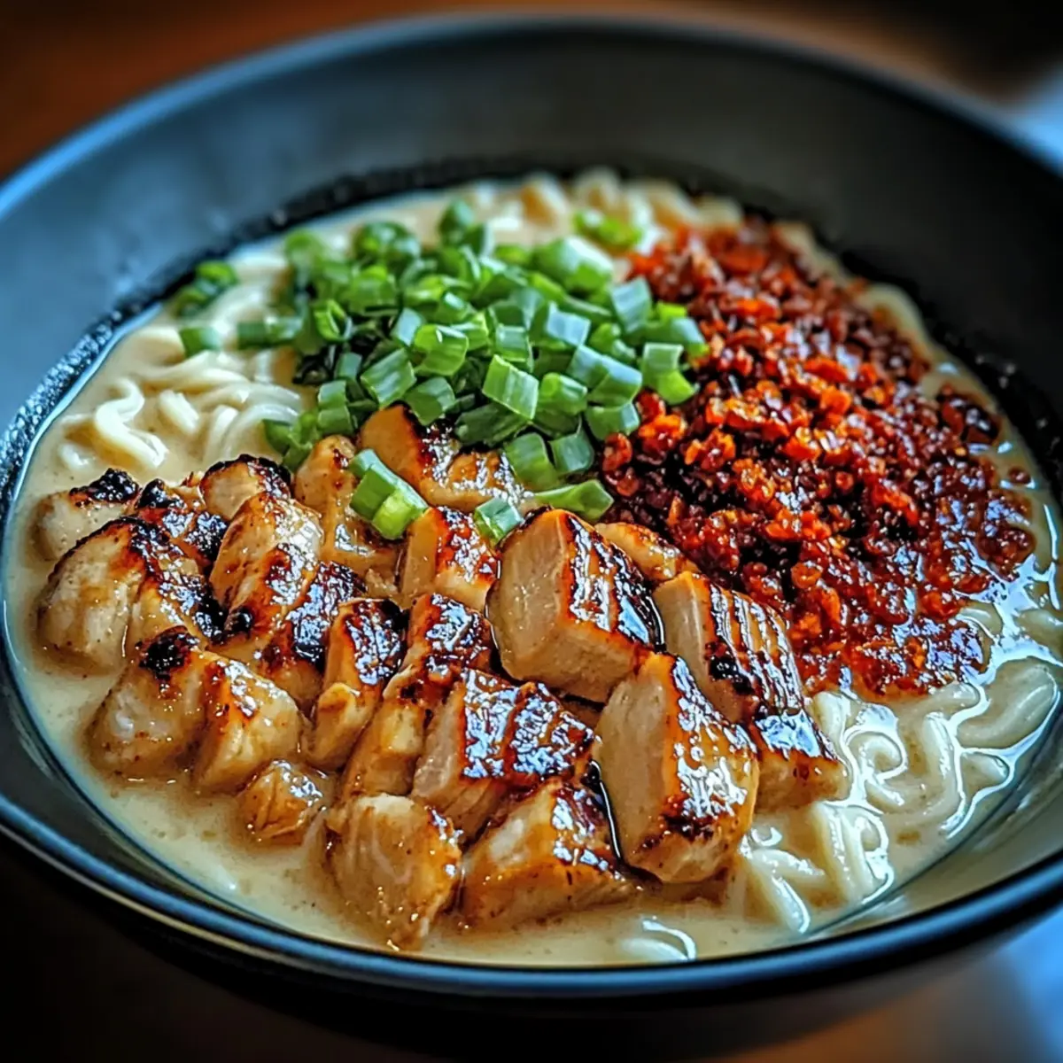 This Fiery Chicken Ramen contains common allergens such as soy (in soy sauce) and dairy (in heavy cream). For a gluten-free alternative, use tamari instead of soy sauce, and for a vegan version, simply replace the heavy cream with coconut cream or cashew cream. Always double-check ingredient labels to ensure they meet your dietary needs.
