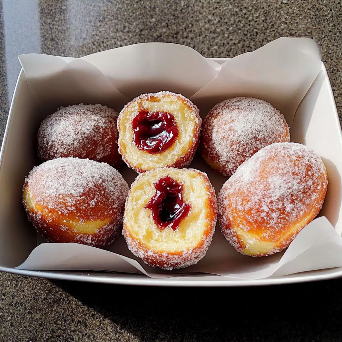 Irresistible Flavors: Each bite of these filled sourdough donuts reveals a delightful explosion of your chosen filling, be it rich chocolate ganache or fruity jam. Crowd-Pleasing Treat: Perfect for sharing, they make an impressive addition to brunch or dessert. Simple Technique: With basic frying and baking skills, you can easily master this recipe at home. Unique Twist: The addition of sourdough gives a special twist, elevating them above standard donuts. Versatile Fillings: Customize them with an array of flavors to satisfy any palate—try some Creme Brulee Donuts for an extra sweet treat!Timeless Tradition: Celebrate the heritage of Bomboloni or Krapfen while creating delicious memories.