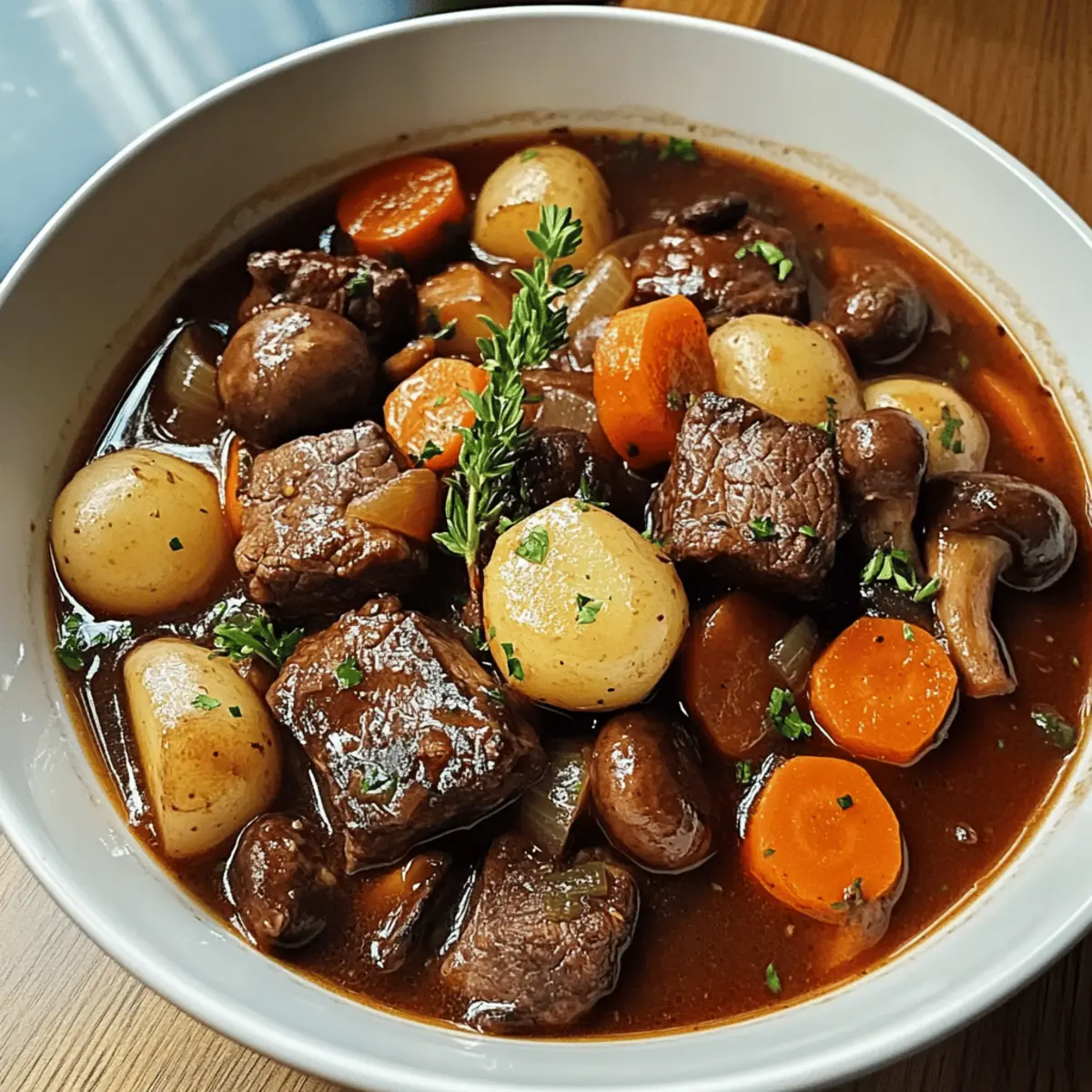 • Red Wine (preferably Burgundy) – adds depth and complexity; it’s key for a flavorful French Beef Stew.