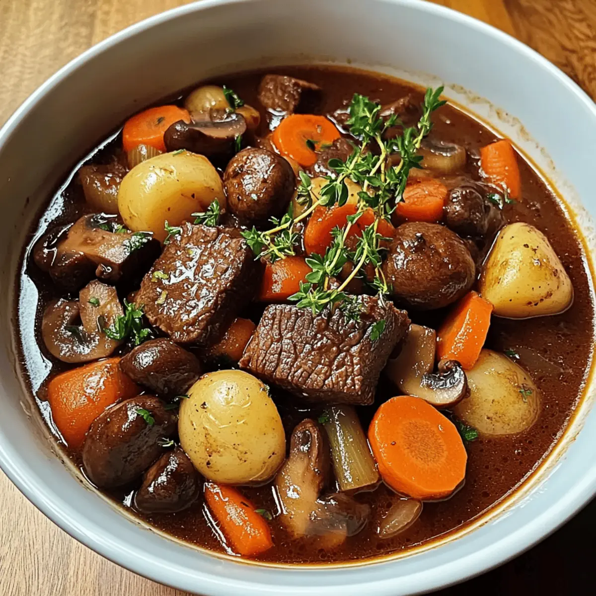 As I stood over the simmering pot, the aroma of garlic and red wine filled my kitchen, wrapping me in warmth and nostalgia. Nothing brings home the comfort of family meals quite like a classic French Beef Stew. This hearty recipe combines tender chunks of beef chuck, earthy mushrooms, sweet carrots, and delicate pearl onions, all slow-cooked in a rich sauce that speaks to the heart of French cuisine. With just 20 minutes of prep and a leisurely 2½ hours in the oven, this dish becomes a melody of flavors that’s perfect for cozy gatherings or a quiet night in. Plus, it’s freezer-friendly—ideal for those busy nights when comfort food is desperately needed. Ready to discover how to create this velvety stew that will have everyone asking for seconds? Let’s dive in!