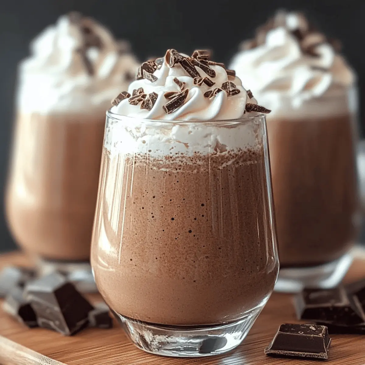 Pour the frosty mixture into tall glasses or mason jars, filling them just below the rim to allow for toppings. Use a spatula to scrape the sides of the blender for any leftover chocolate goodness to include in each glass. The sight of your thick, chocolatey creation should already make mouths water in anticipation of this refreshing treat.