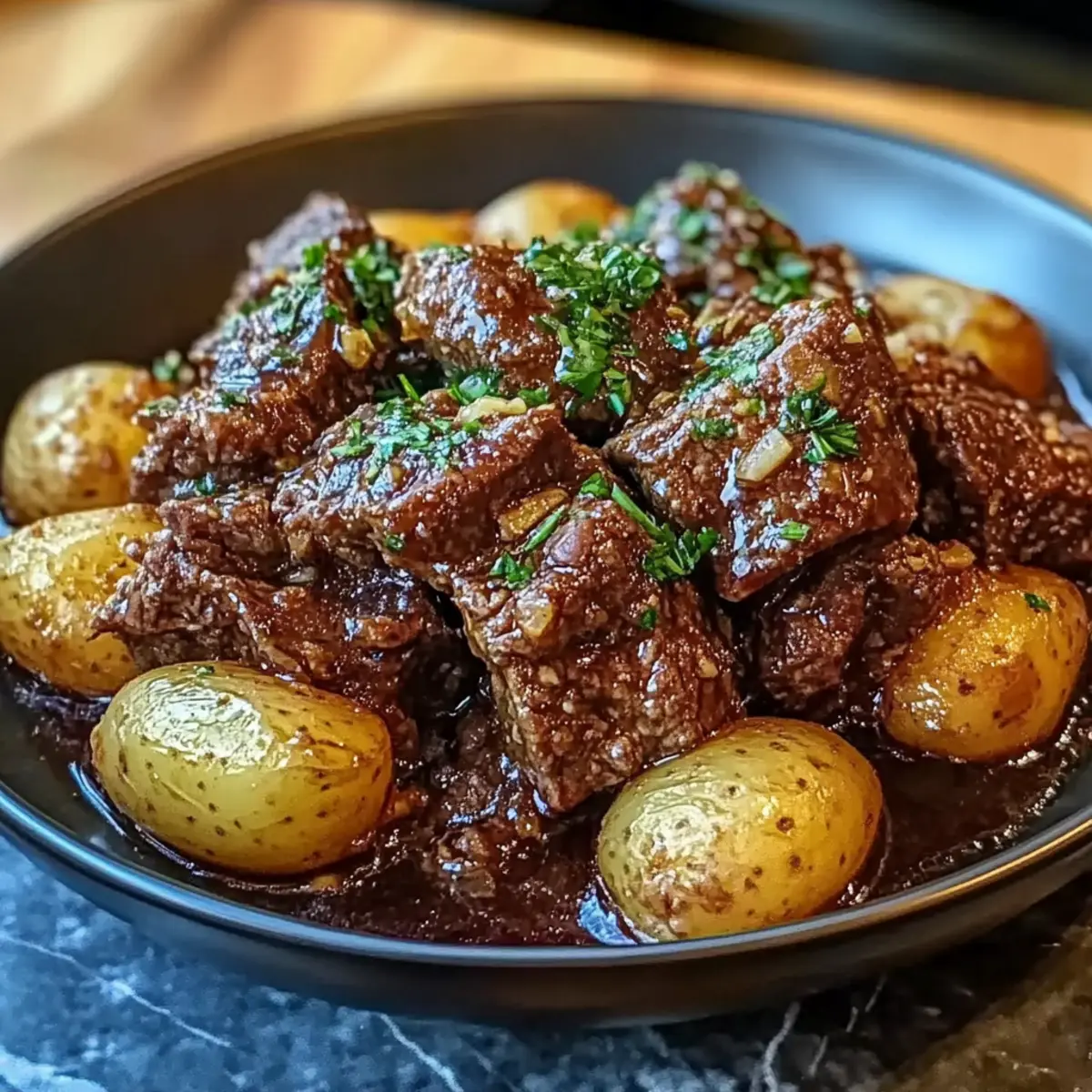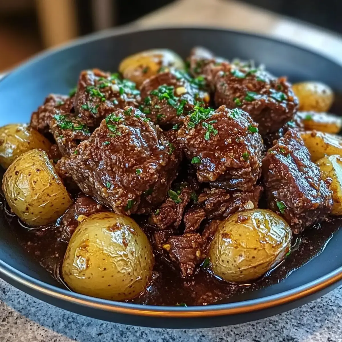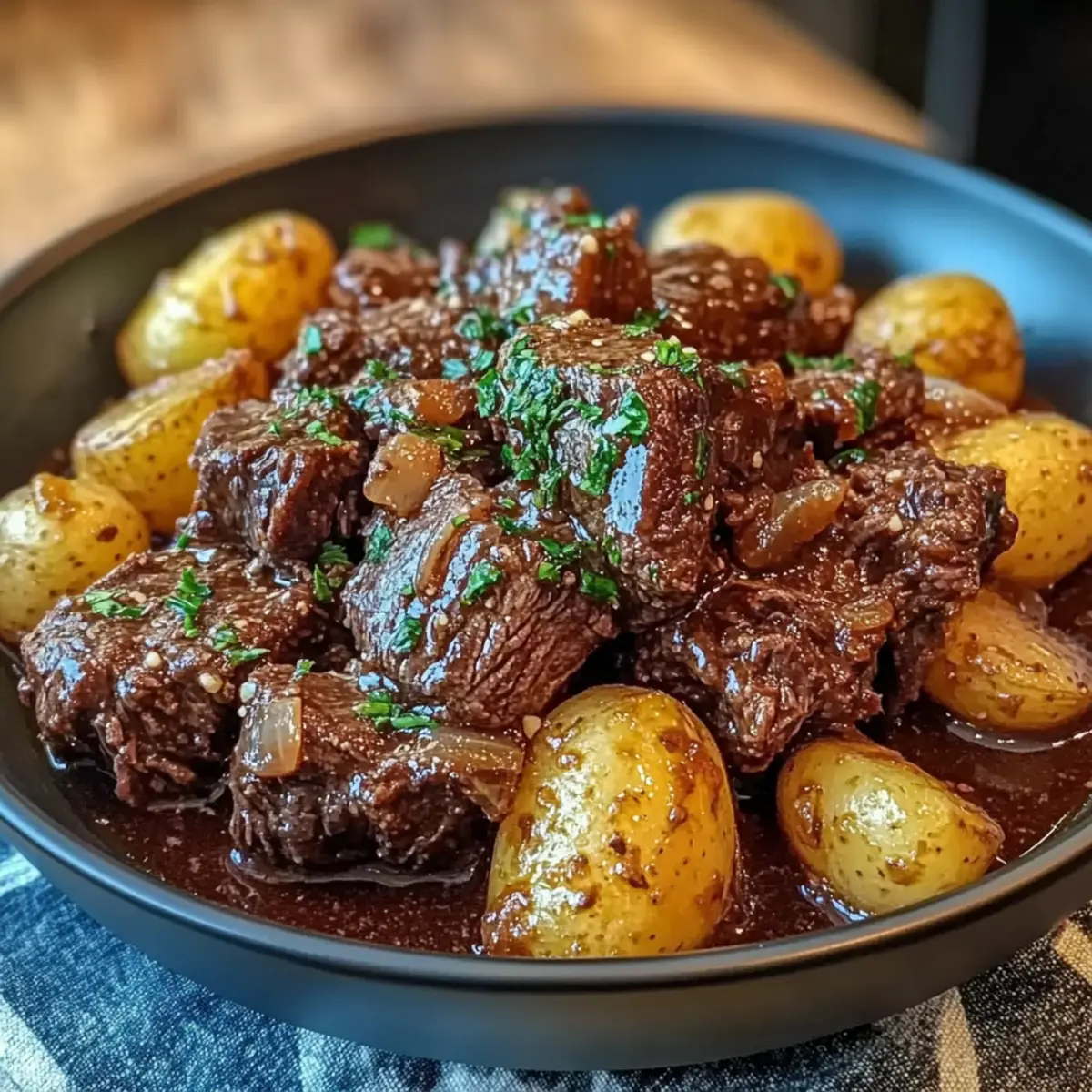 Before serving, melt butter in a small saucepan with additional minced garlic over low heat, about 2 minutes. Once melted, drizzle this rich garlic butter sauce over the cooked beef and potatoes for an extra layer of flavor. Add a sprinkle of fresh parsley for a beautiful garnish that brightens your dish just before enjoying!