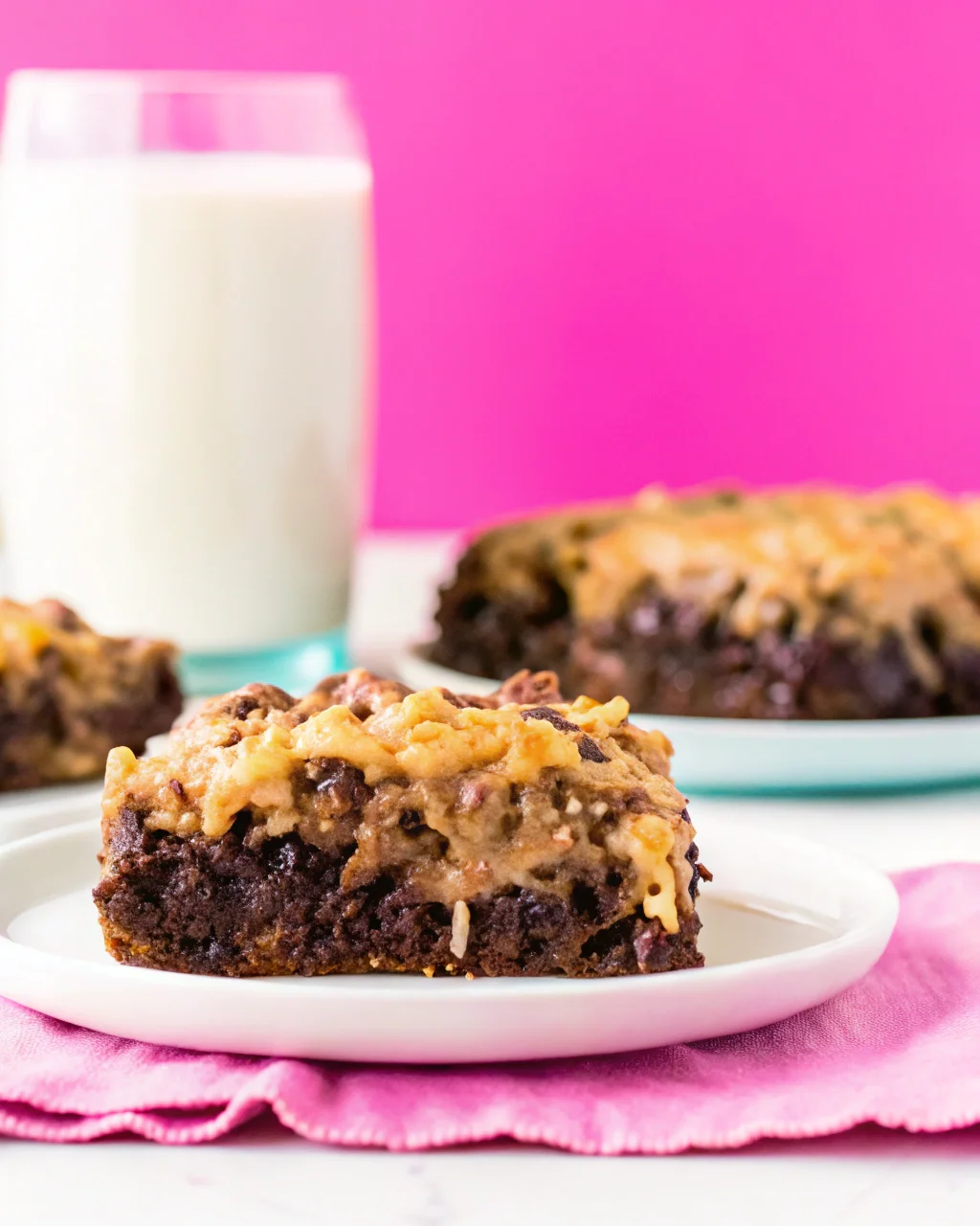 - Sprinkle the toasted coconut and pecans over the top. Drizzle with melted chocolate chips for an extra indulgent touch.