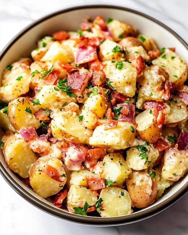 German potato salad is a delightful dish that brings warmth and comfort to any table. Unlike its American counterpart, this version is typically served warm and features a tangy dressing made from apple cider vinegar. The combination of tender baby potatoes, crispy bacon, and fresh parsley creates a dish that is both hearty and refreshing.