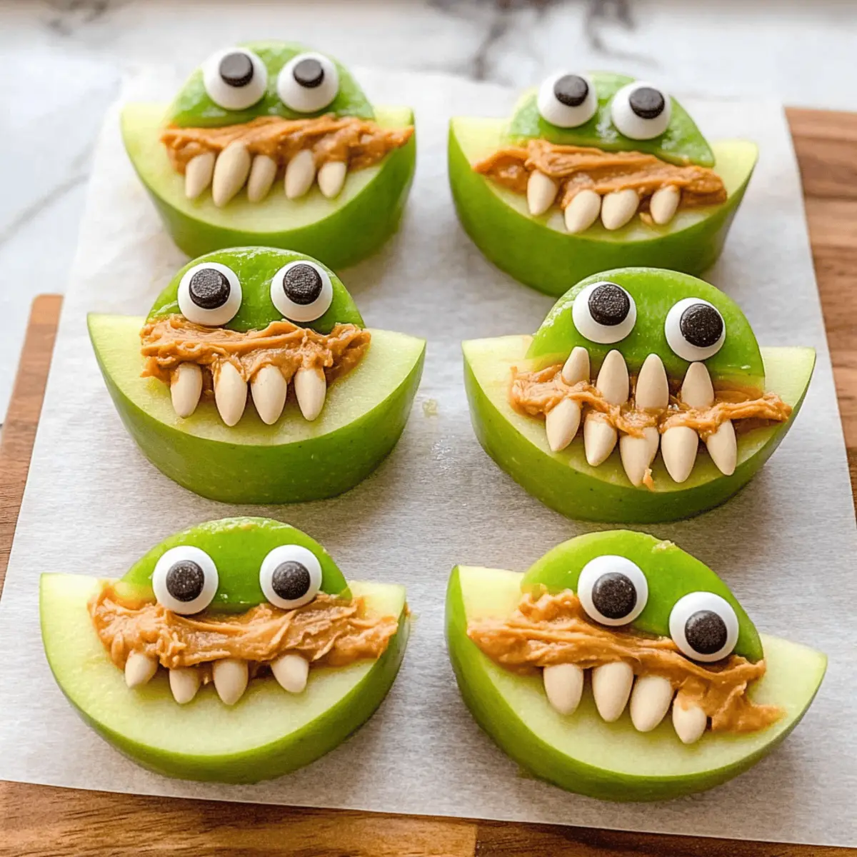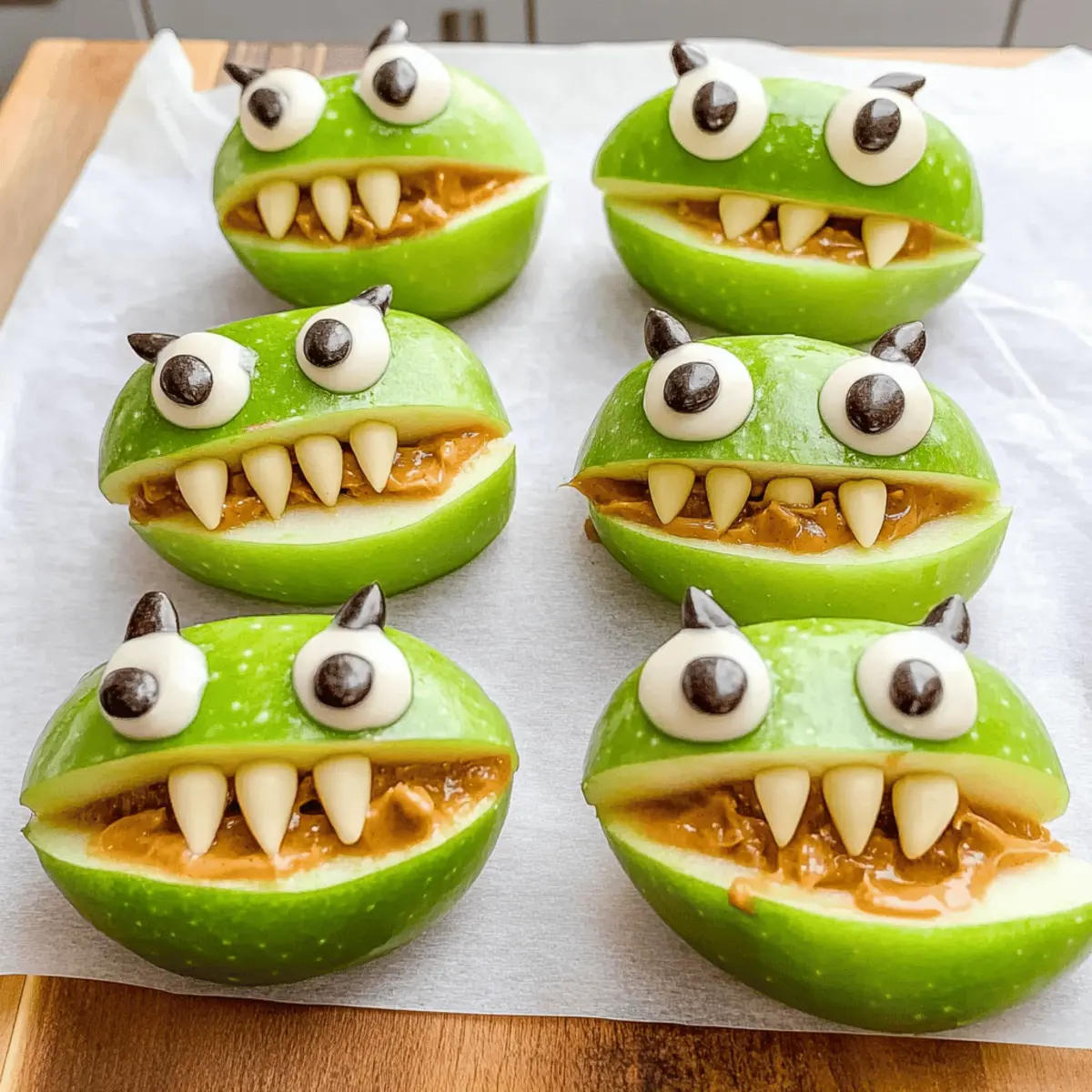 If that happens, you can sprinkle some lemon juice on the cut surfaces of the apples before assembly. This helps slow down oxidation and keeps them looking fresh. Additionally, prepare the apples just before serving to maintain their beautiful green color and crunch, ensuring your Green Apple Monsters are as appealing as they are tasty!