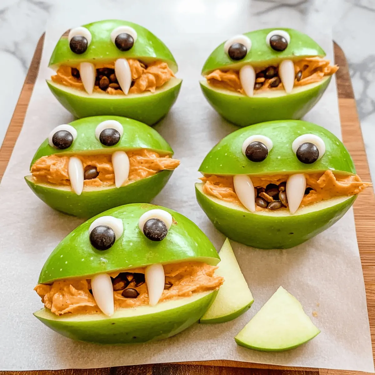 Use Fresh Apples: Ensure your green apples are firm and fresh to maintain the crunchiness of your Green Apple Monsters. Soft apples can make the snack soggy.